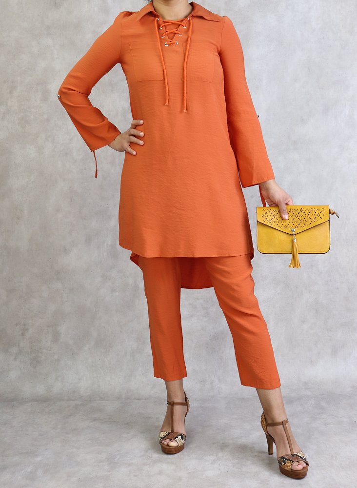 Ensemble deux pièces tunique et pantalon de couleur Corail Vetement & Accessoire