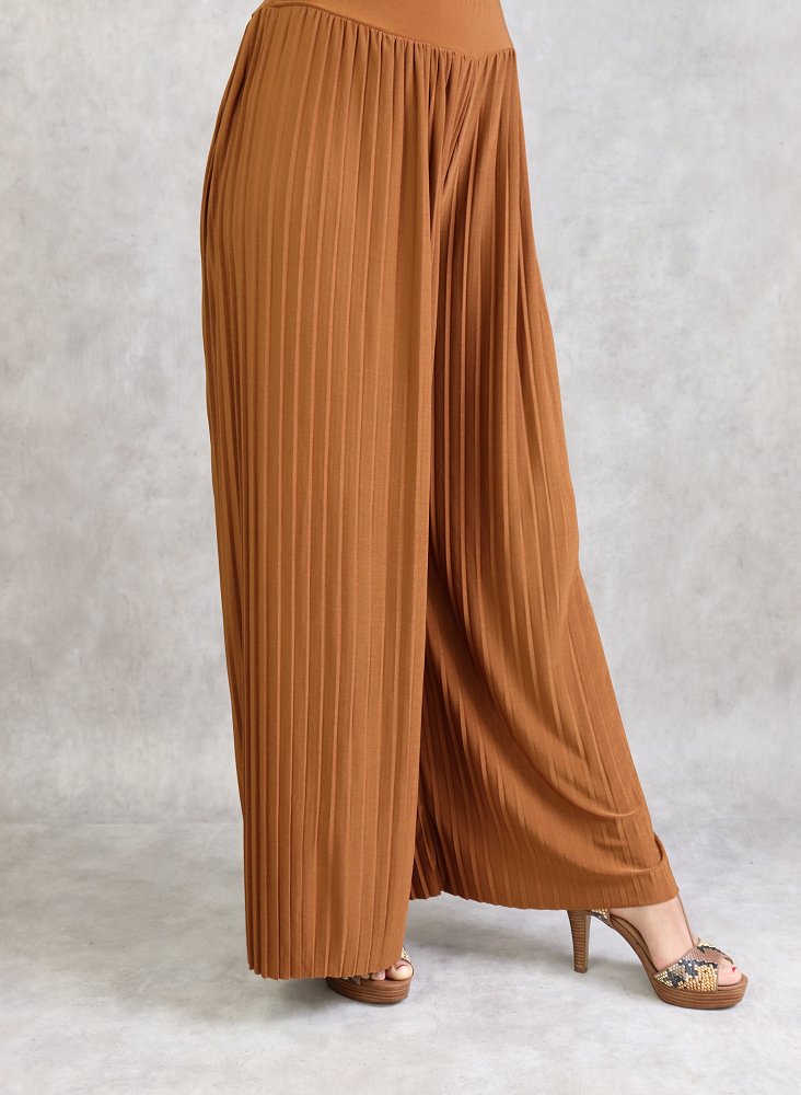 Pantalon large, tissu fluide, taille élastique. Avec sa coupe et son effet plissé ce modèle donne toute sa féminité au pantalon.