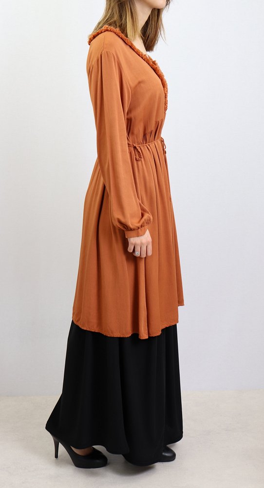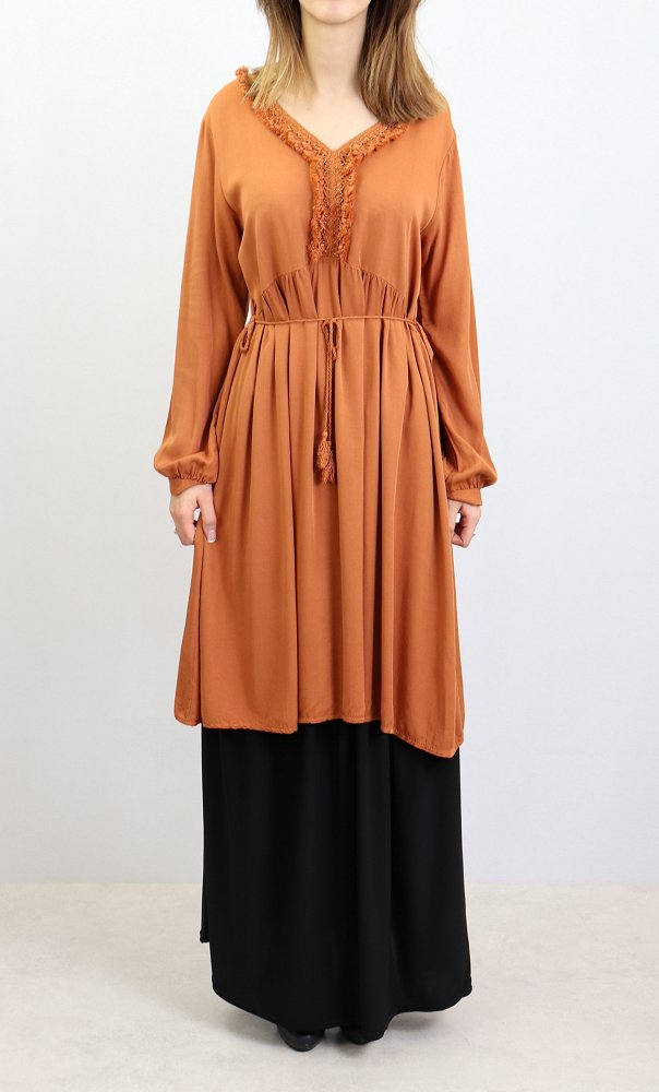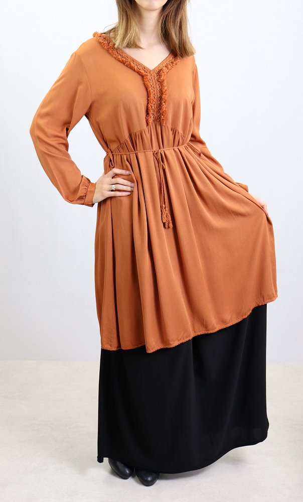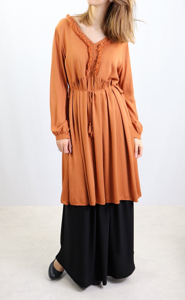 Tunique longue style boheme - Taille Unique - Couleur Rouille
