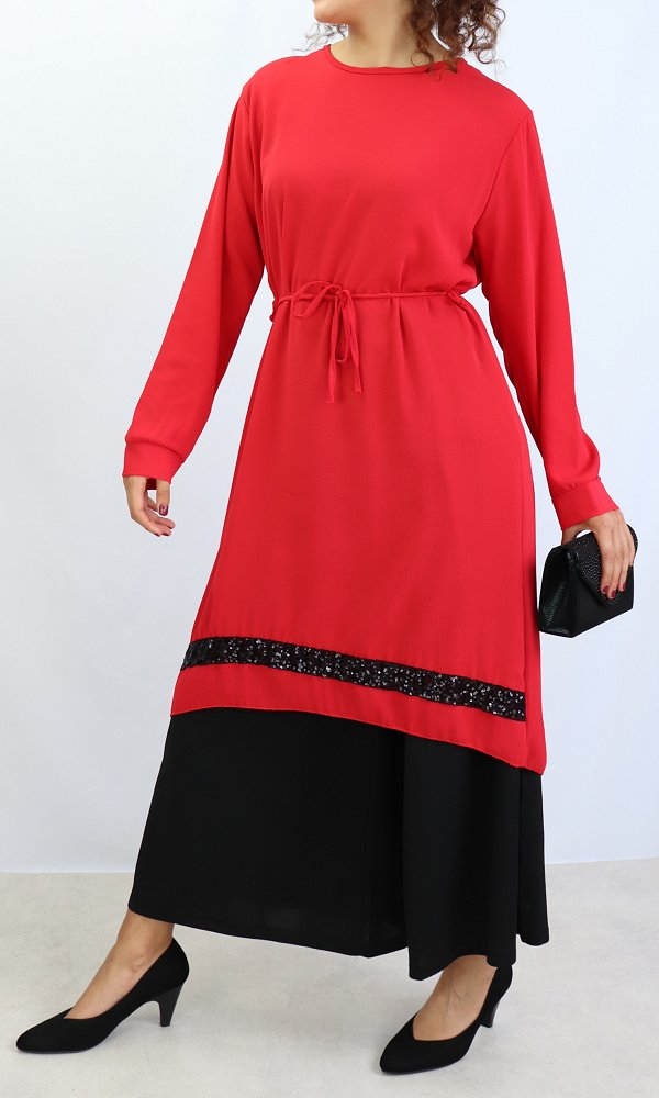 Chemise à froufrou (Vetement femme musulmane en ligne) - Couleur Rouge - REF. 33146 (24.90 €)