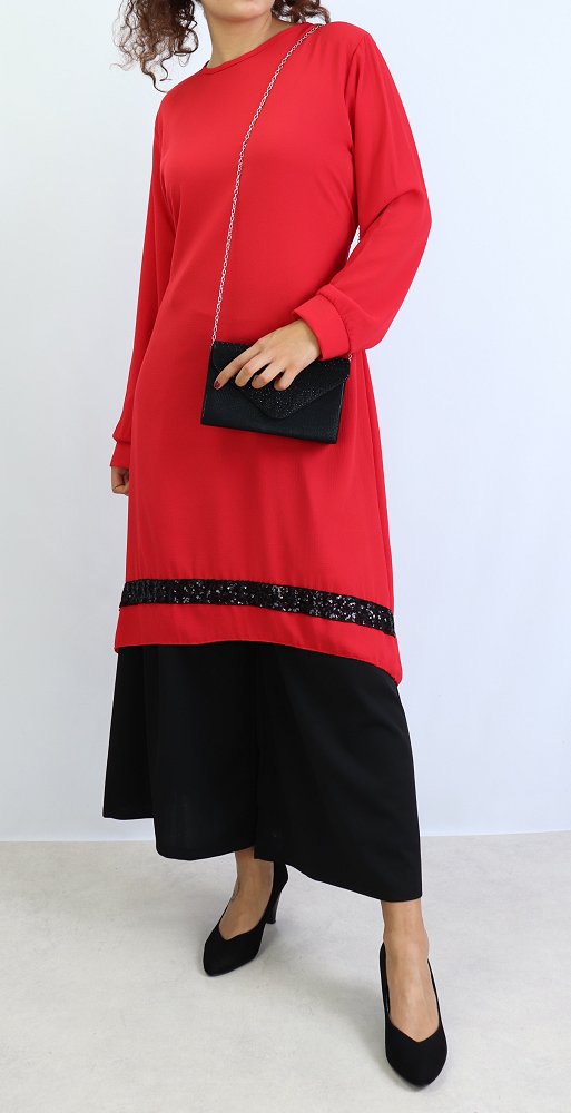 Tunique en crepe avec strass noirs - Couleur Rouge