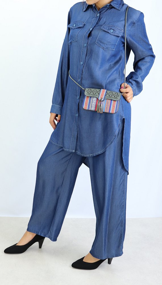Chemise avec poches latérales de couleur Bleu Jean Vetement & Accessoire