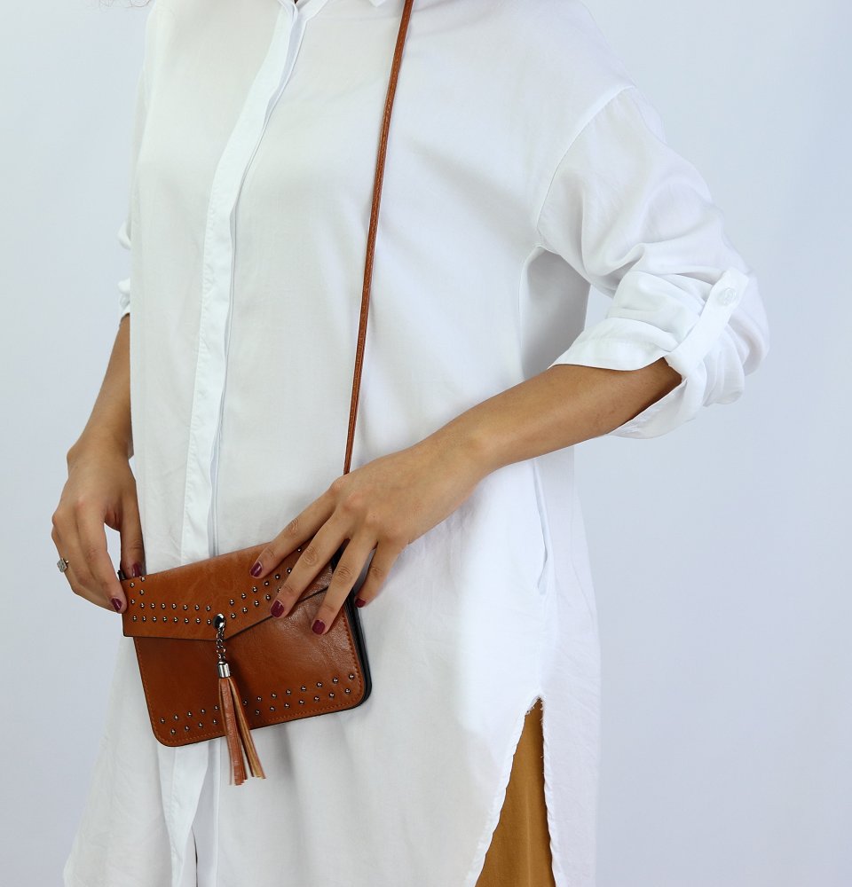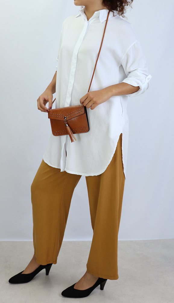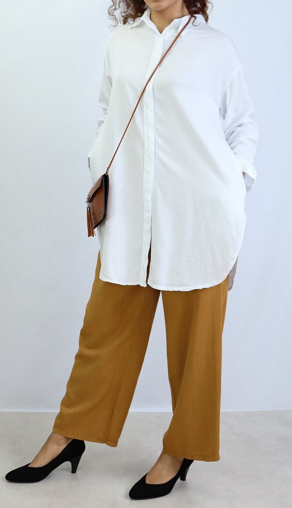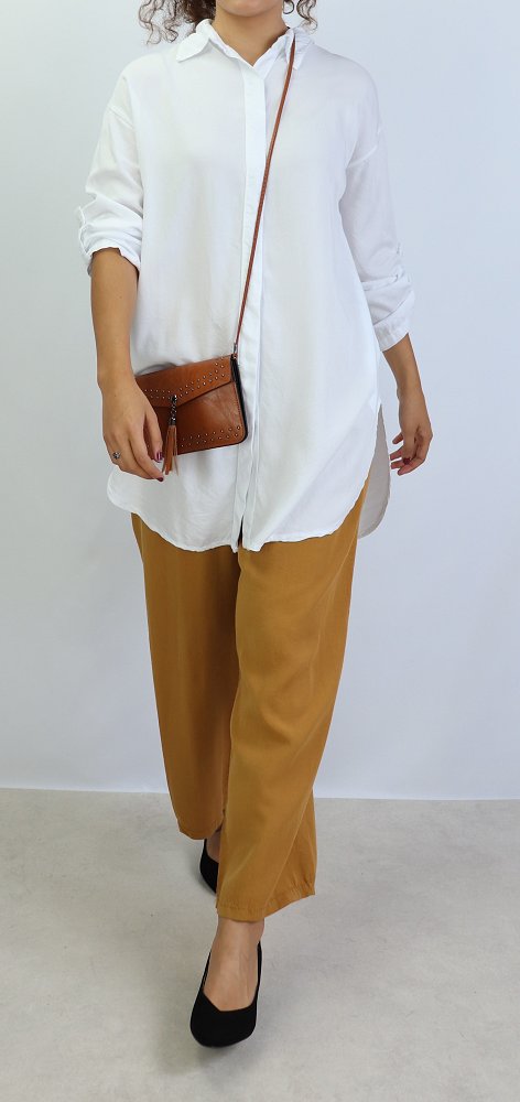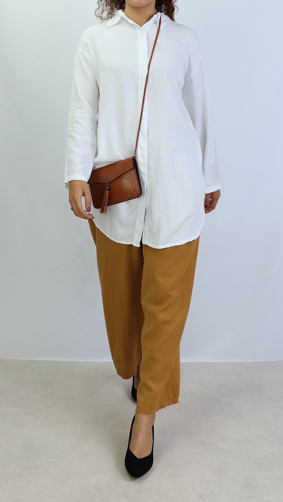 Chemise ample décontractée avec fermeture boutons, manches retroussables.