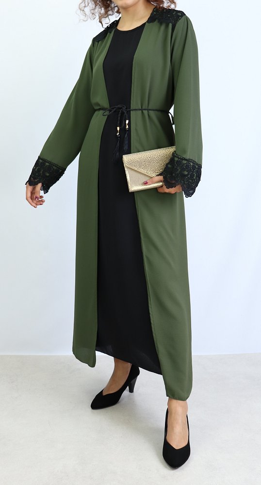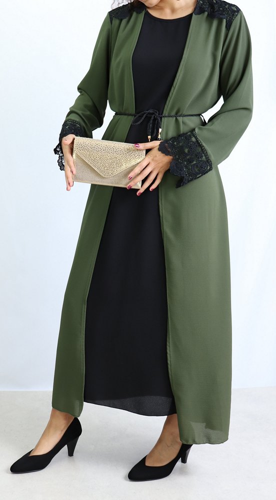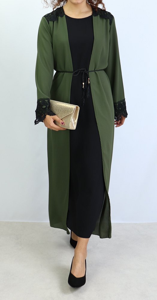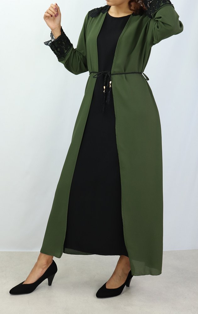 Veste longue classique boutonnée élégante (Vêtement Hijab pour femme voilée) - Couleur kaki - REF. 33248 (24.90 €)