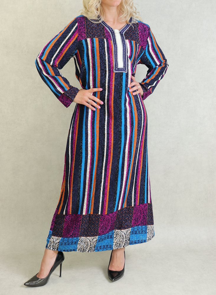 Robe Gandoura longue à rayures multicolore de style Orientale (Plusieurs couleurs disponibles) - REF. 37106 (19.90 €)