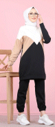 Survêtement 2 pièces composé d'un sweat mi long, capuche avec liens de serrage, coupe droite et d'un bas taille élastique. La signature de ce modèle : deux bandes larges blanches et une bande fine noire.