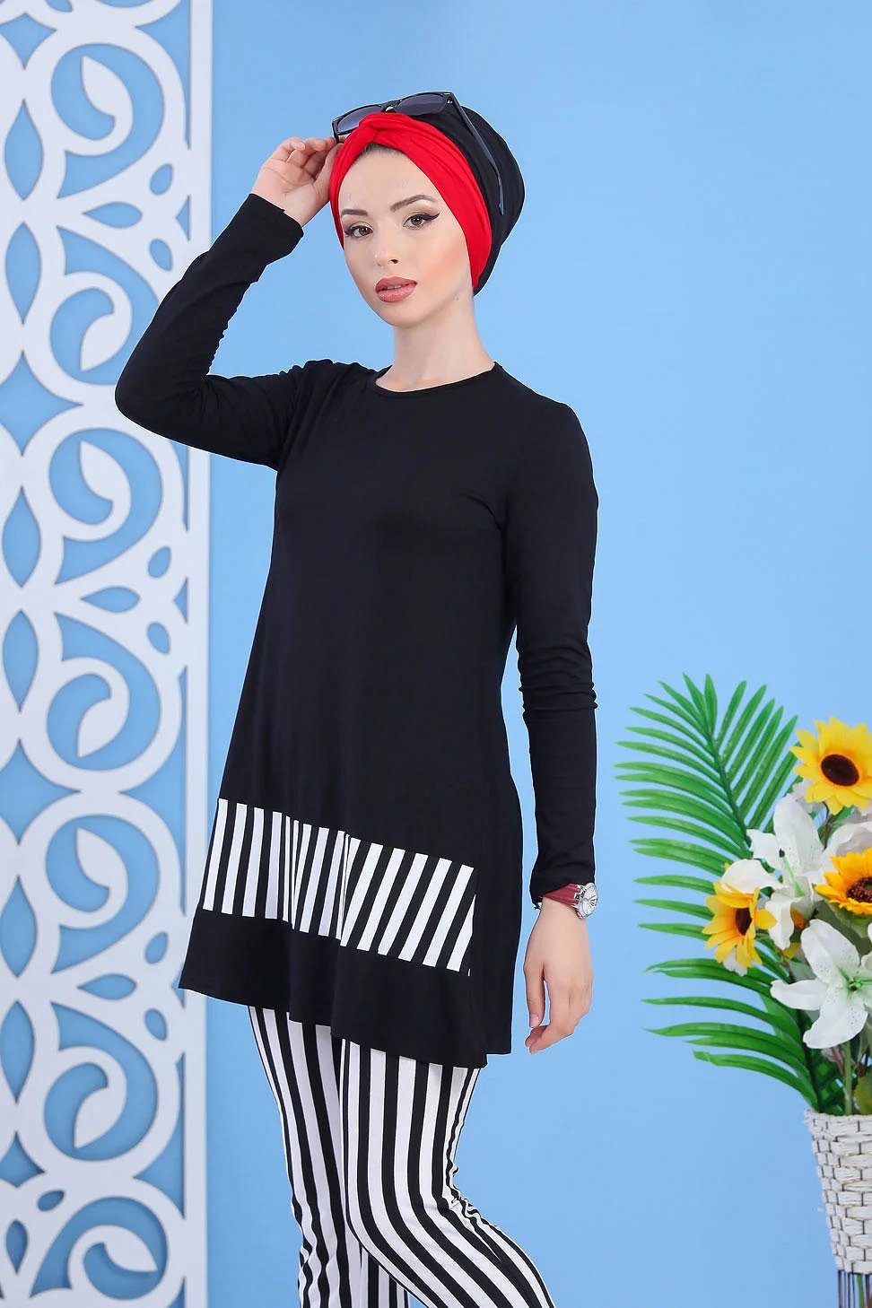 Ensemble 2 pièces, pantalon à rayures + Tunique à manches longues,