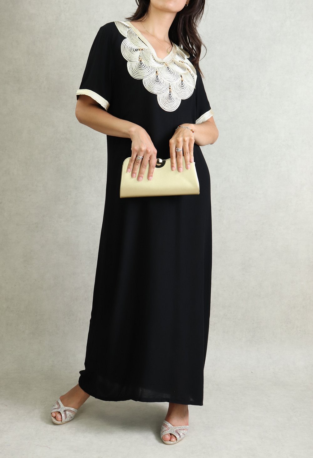 Robe longue croisée à strass de couleur noir - REF. 31468 (35.00 €)