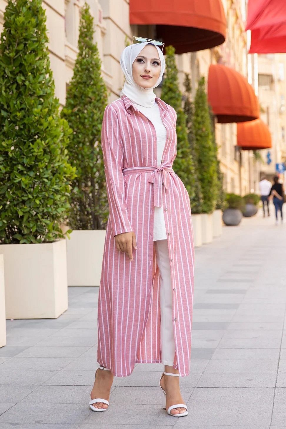 Robe chemise très longue boutonnée, coupe droit, avec un lien à nouer, col classique, manches longues, se porte avec légèreté. On aime son style chic décontracté. Tendance et flatteuse, cette version à rayures a tout pour nous plaire.