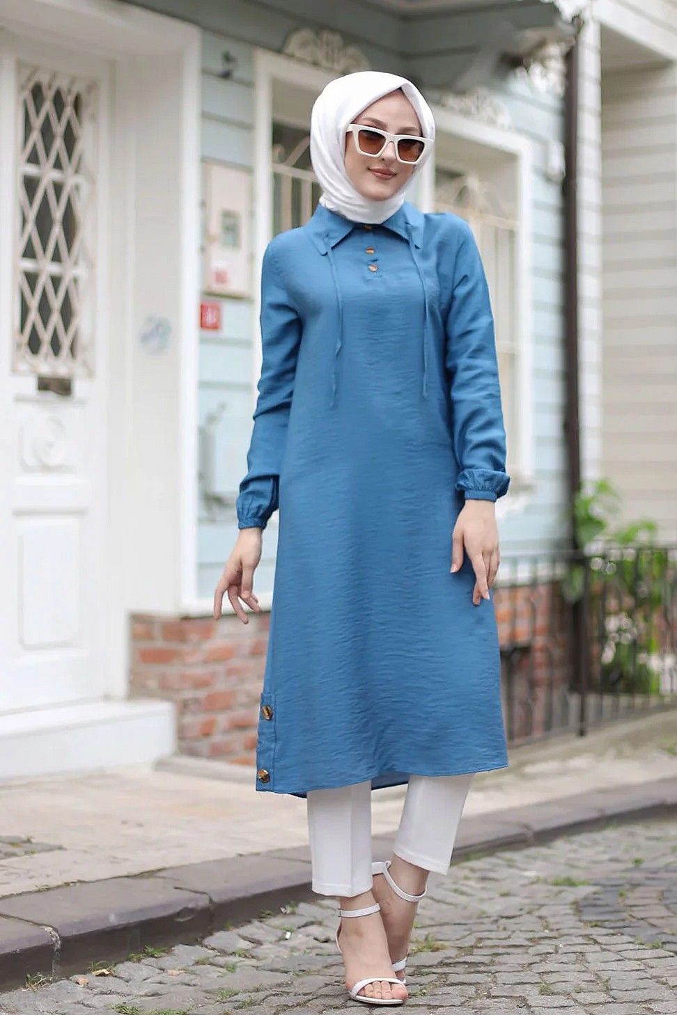 Tunique-Chemise ample avec dentelle pour femme (Vetement Hijab classique) - Couleur bleu - REF. 35977 (24.90 €)