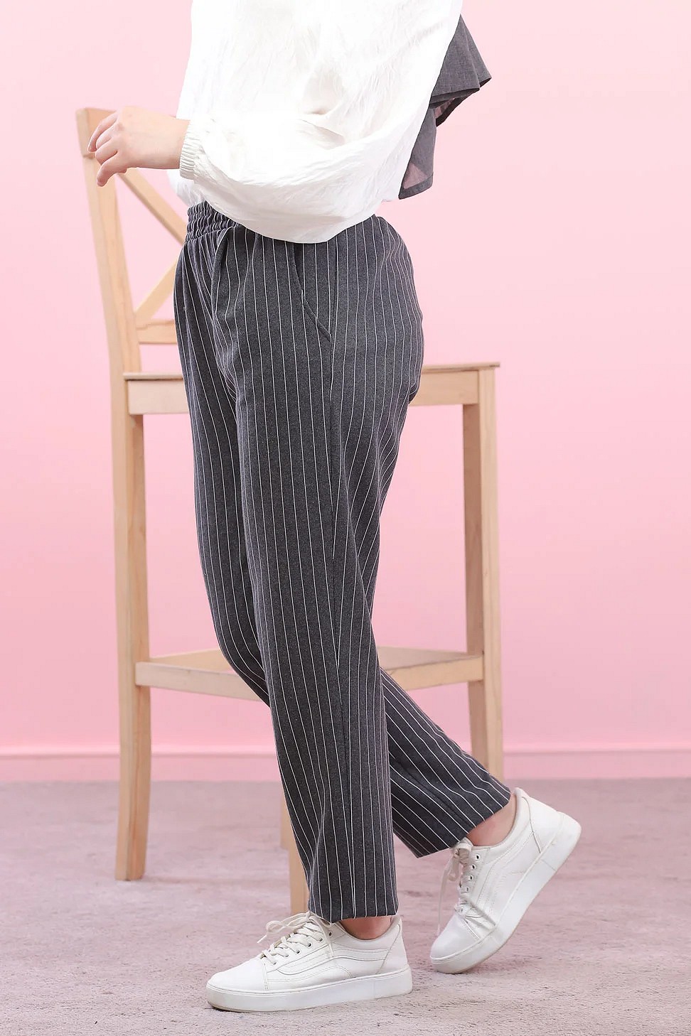 Pantalon coupe droite, taille élastique, deux poches plaquées, matière souple et agréable au toucher.