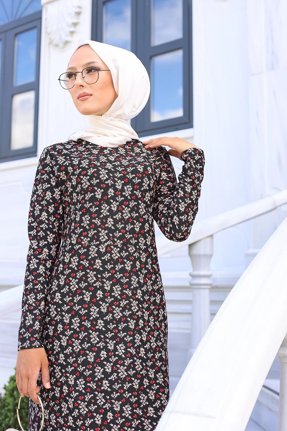 Robe a fleurs (motifs fleuris) - Vetements pour femme voilee en ligne - Couleur noire