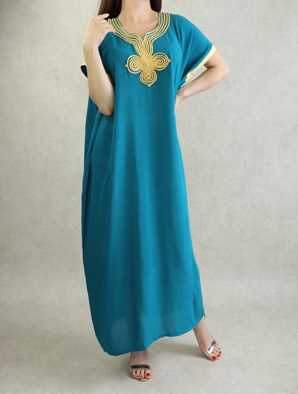 Belle Robe Orientale de type gandoura tunisienne. Coupe droite, tissu fluide et doux de type coton.