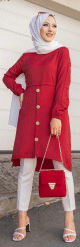 Tunique ample évasée boutonnée (Vetement style habillé pour femme voilée) - Couleur Rouge Bordeaux - REF. 33821 (22.00 €)