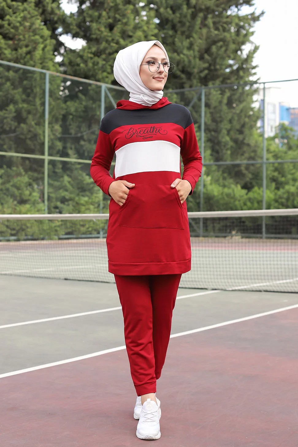 Ensemble sport deux pièces (haut et bas assortis) avec grandes poches et capuche, parfait pour le quotidien ou vos activités sportives. On aime sa coupe tendance pensée pour les femmes actives. Conçu dans une matière coton très qualitative. Imprimé avec le verbe anglais "Breathe" qui signifie "Respirer".