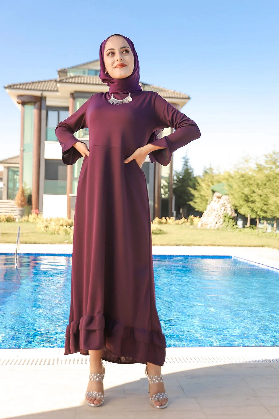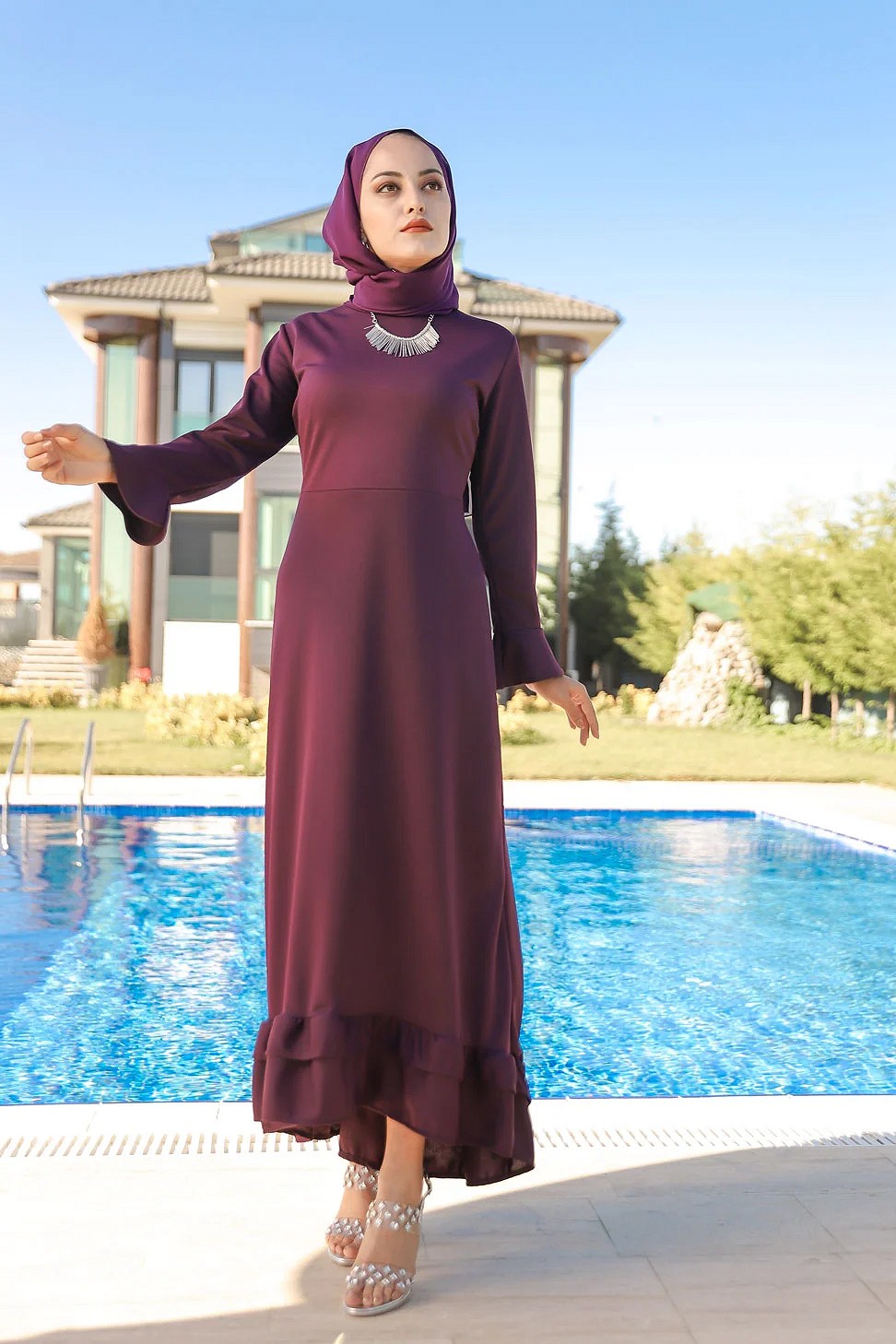 Robe très longue à volants (Vetement Turque femme voilée) - Couleur violet foncé Vetement & Accessoire