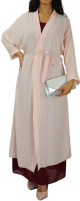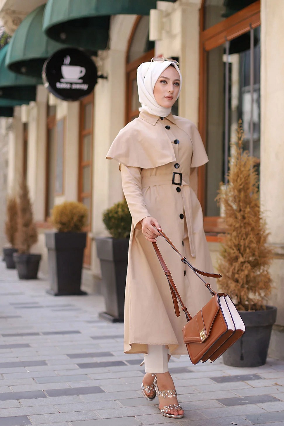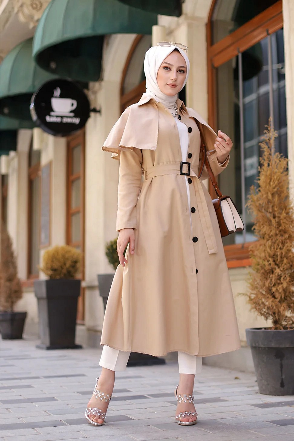 Robe mi longue, fermeture boutons sur toute la longueur, empiècement sur les épaules style "TRENCH", ceinture assortie à passants. Coupe cintrée à la taille puis évasée, tissu léger et opaque