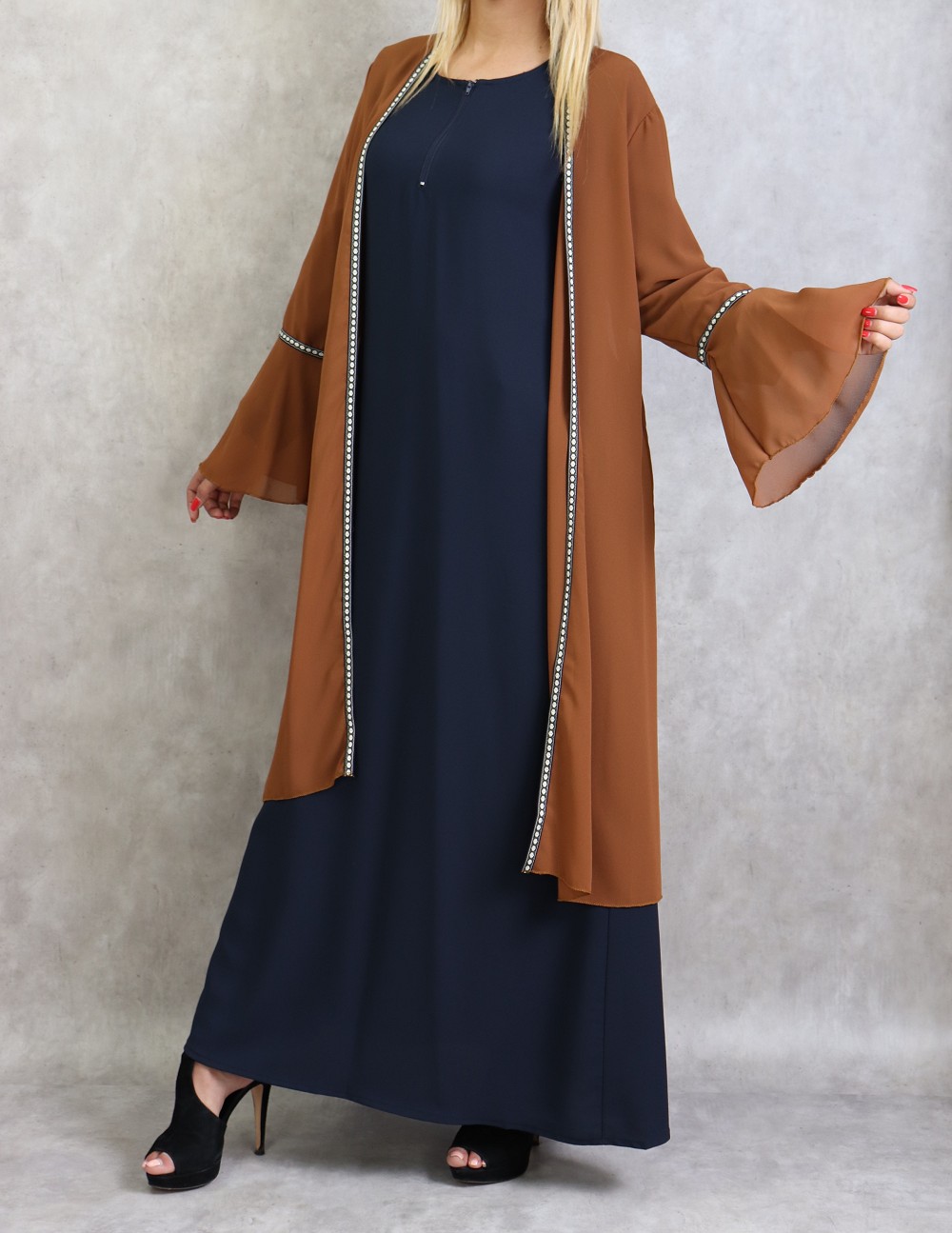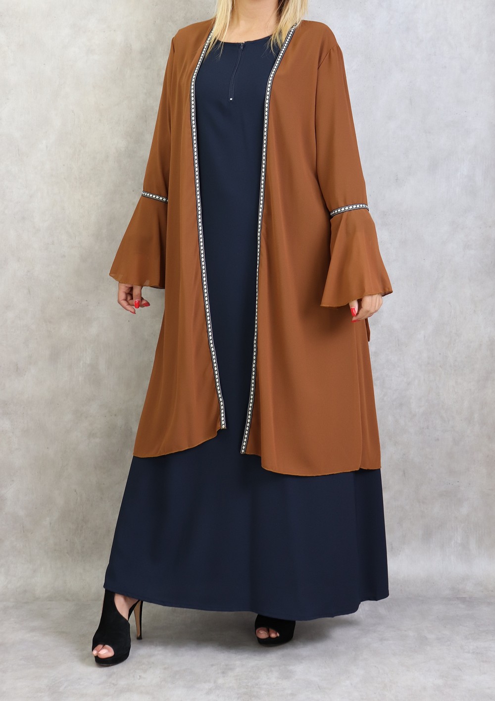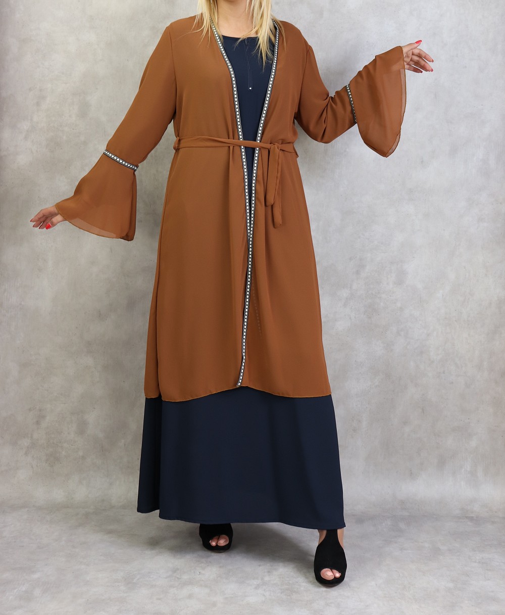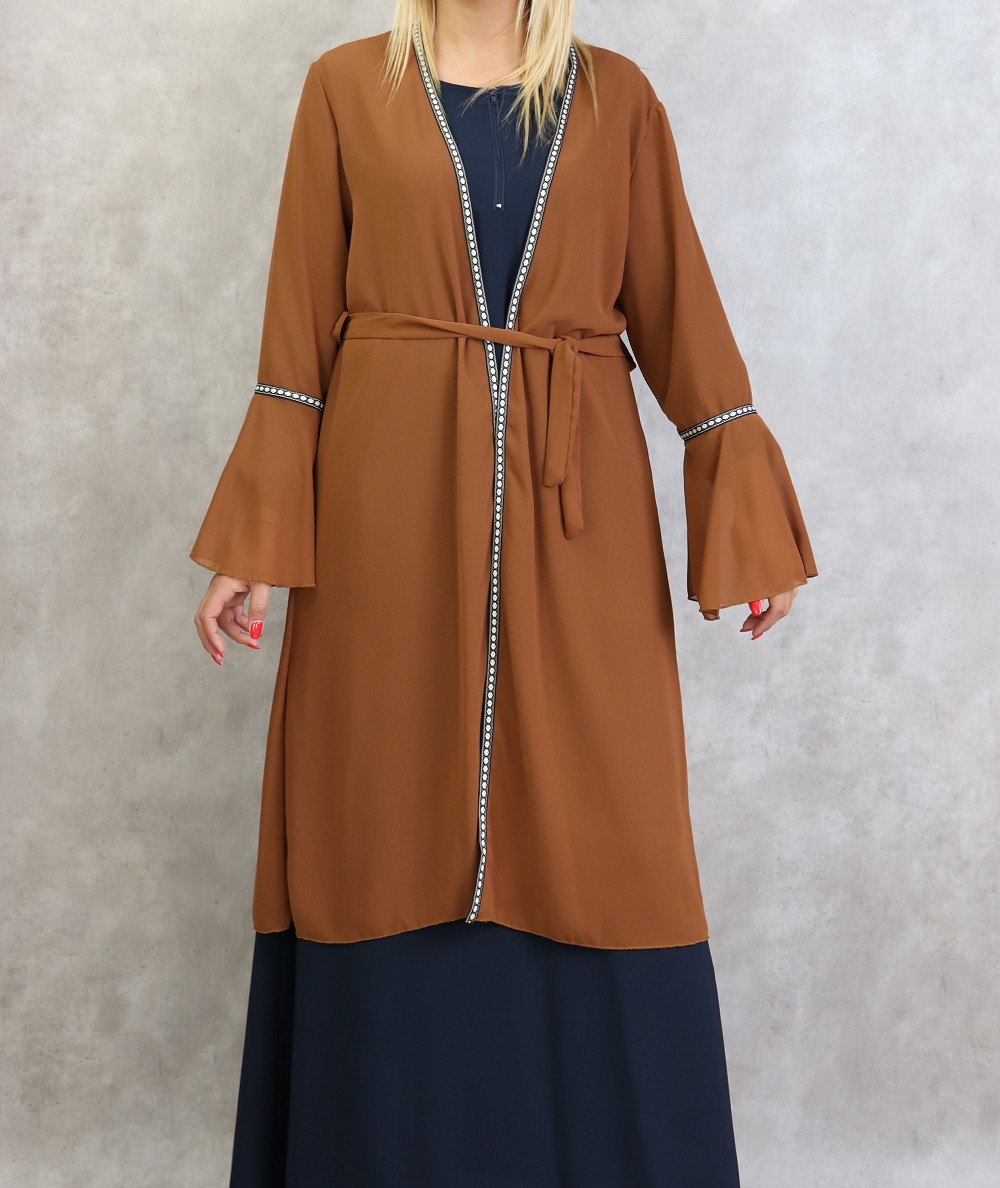 Kimono mi-long, matière fluide ultra léger, avec manches cloches, le tout accompagné d'une ceinture à nouer sous passants à la taille. Une fine broderie sur le long et les manches. Ce kimono est la pièce parfaite pour ajouter une touche chic à tous vos looks !