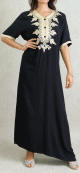 Robe Orientale Algérienne manches courtes avec broderies dorées et strasses pour femme - Couleur noir - REF. 32571 (25.00 €)