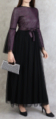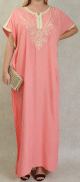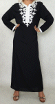 Robe longue, col en V, manches longues ornées de broderies sur les poignets ainsi que sur le buste. Coupe droite, tissu fluide et doux.