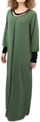 Robe brodée avec ceinture (Vêtement Hijab élégant pour femme voilée) - Couleur kaki - REF. 37082 (26.90 €)