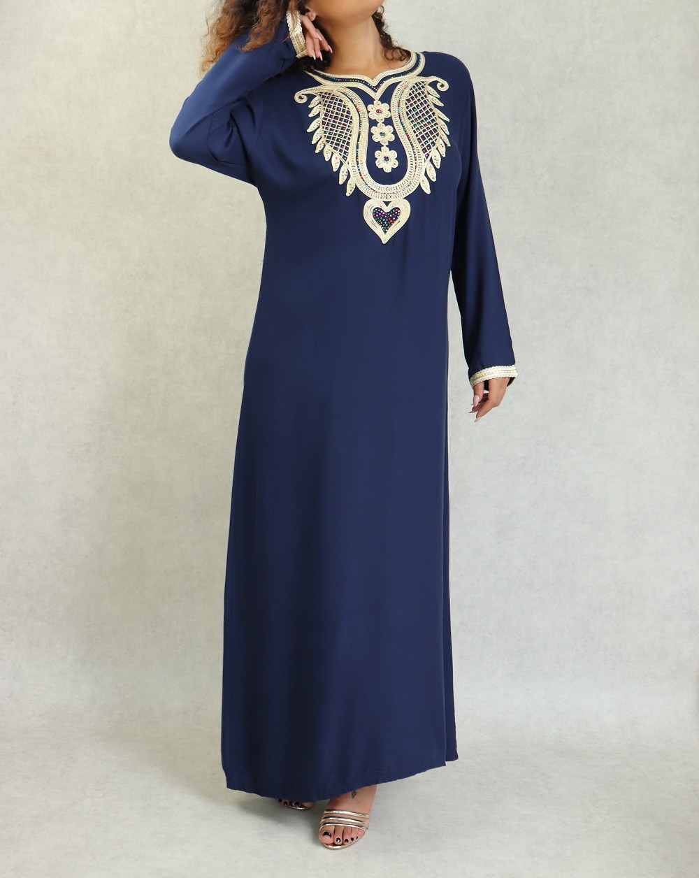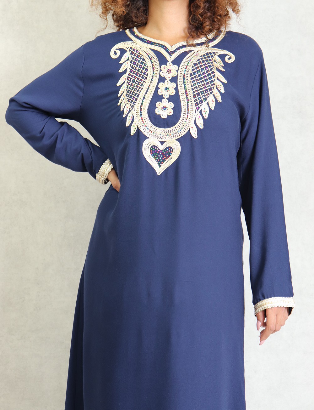 Robe orientale brodee avec strass pour femme - Couleur Bleu marine