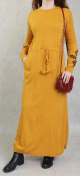 Robe longue en maille fine (Automne - Hiver) - Couleur Jaune moutarde - REF. 34021 (29.90 €)