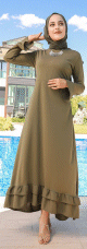 Robe très longue à volants (Abayas et vetements pour femmes voilées) - Couleur Kaki - REF. 34567 (24.90 €)