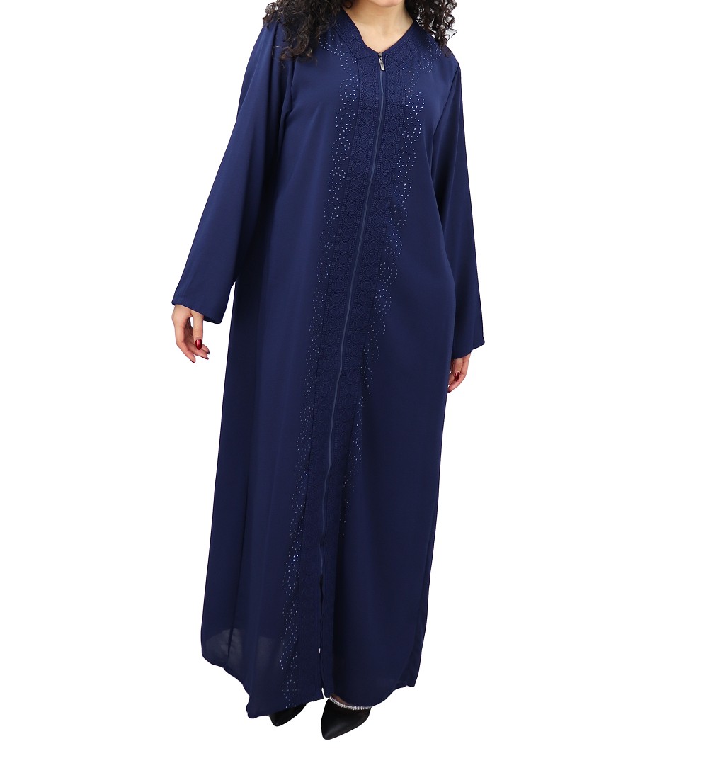 Robe / Abaya Longue a ouverture zip avec broderies et strass pour femme - ( Plusieurs couleurs disponibles)