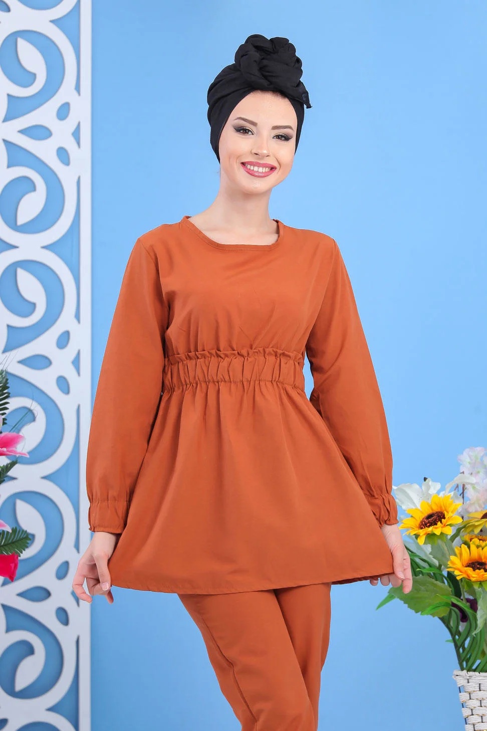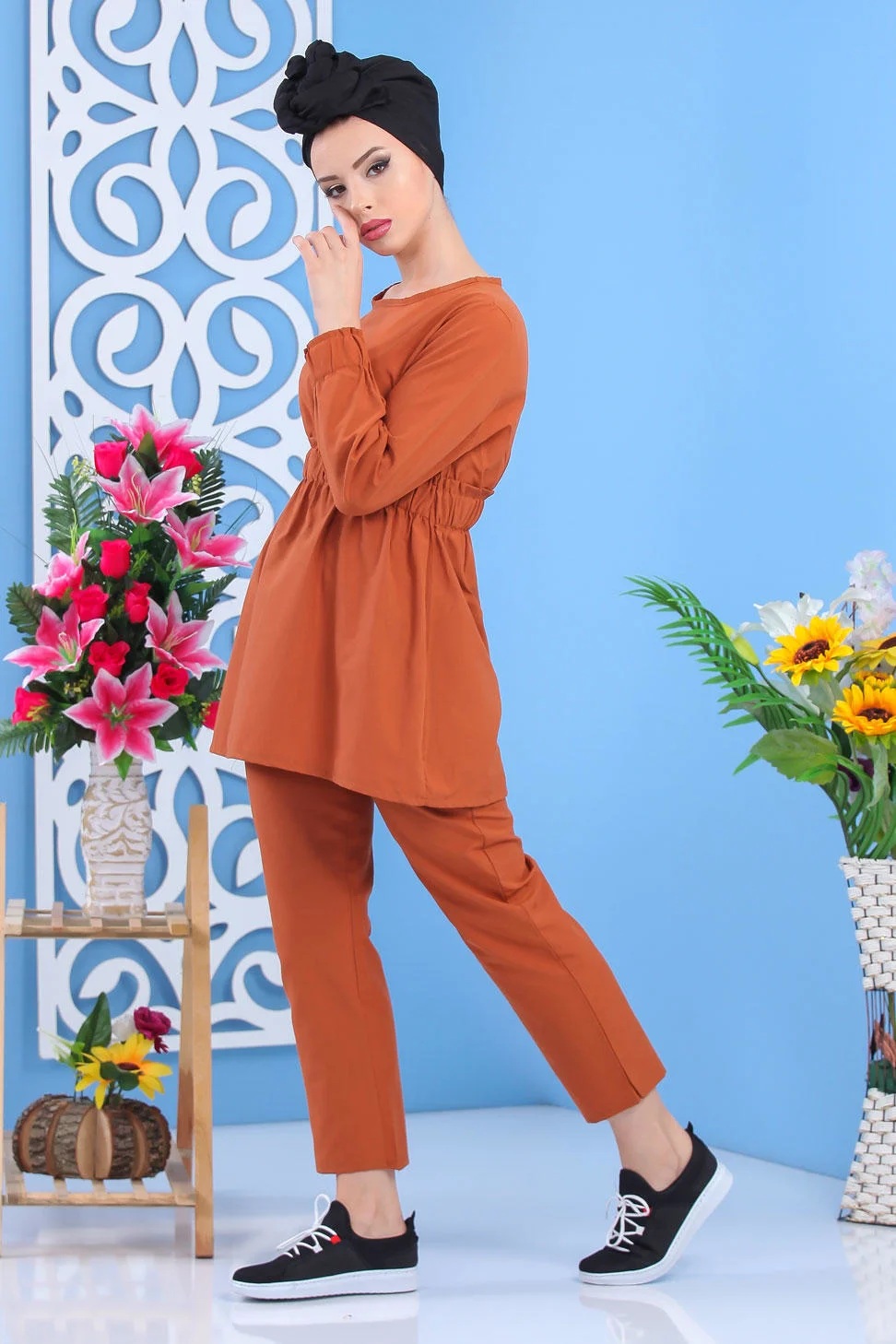 Ensemble casual veste ample et pantalon pour femme (Modest Fashion) - Couleur tabac - REF. 36249 (35.00 €)
