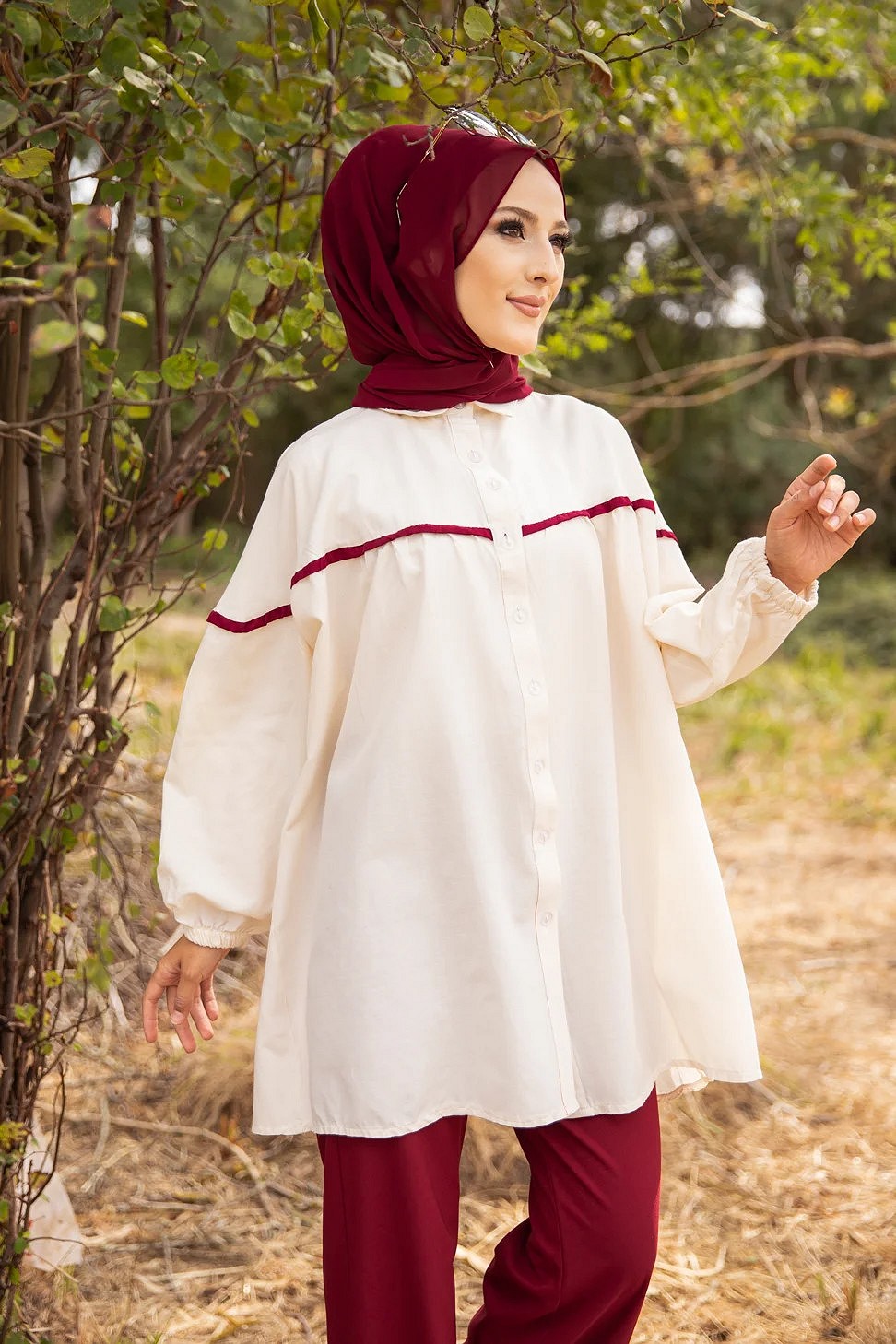 Tunique extra ample, coupe large au niveau bras et de la poitrine, détails fronce au niveau du buste. Boutons fonctionnelles su le devant.