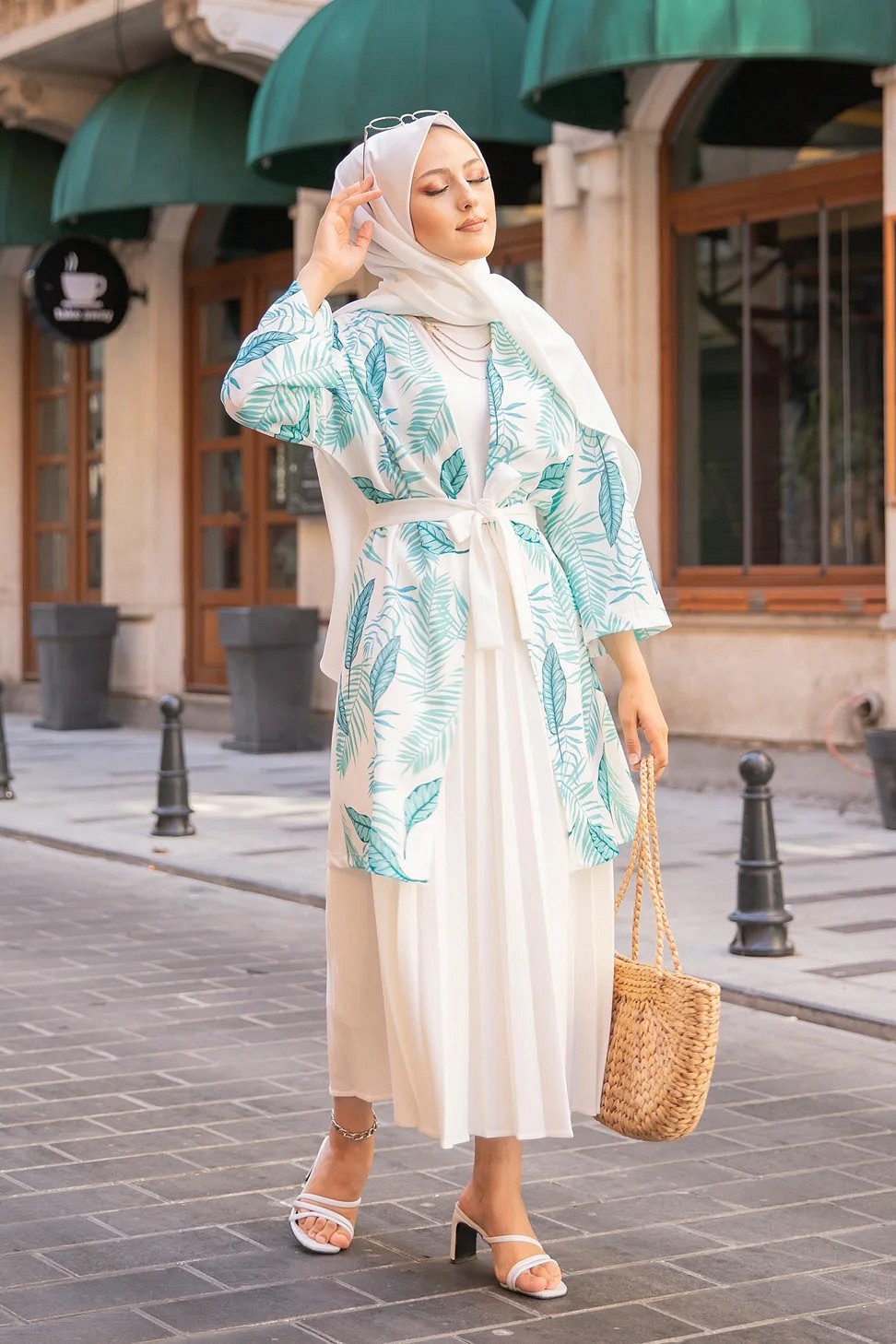 Veste longue classique boutonnée élégante (Tenue Hijab) - Couleur menthe - REF. 33251 (24.90 €)