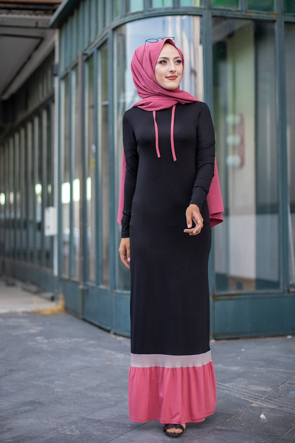 Robe noire et rose avec capuche style moderne pour femme Vetement & Accessoire