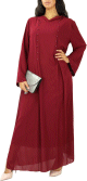 Robe longue fluide à capuche ornée de perles pour femme - Couleur Bordeaux - REF. 30221 (30.00 €) - En Promotion à 22.90 €