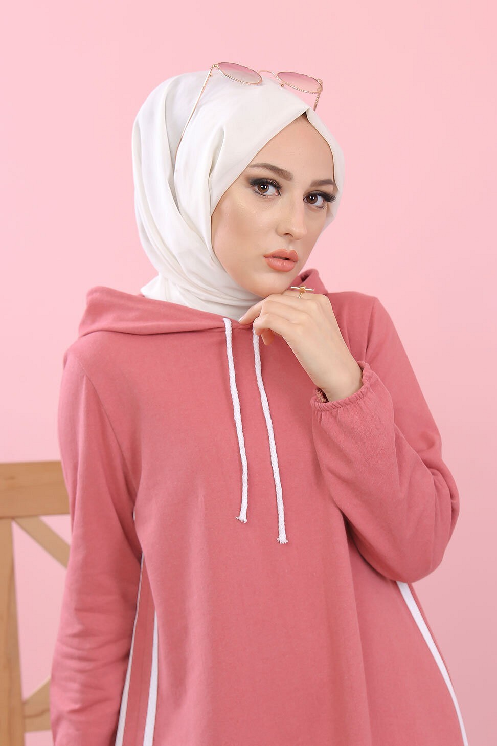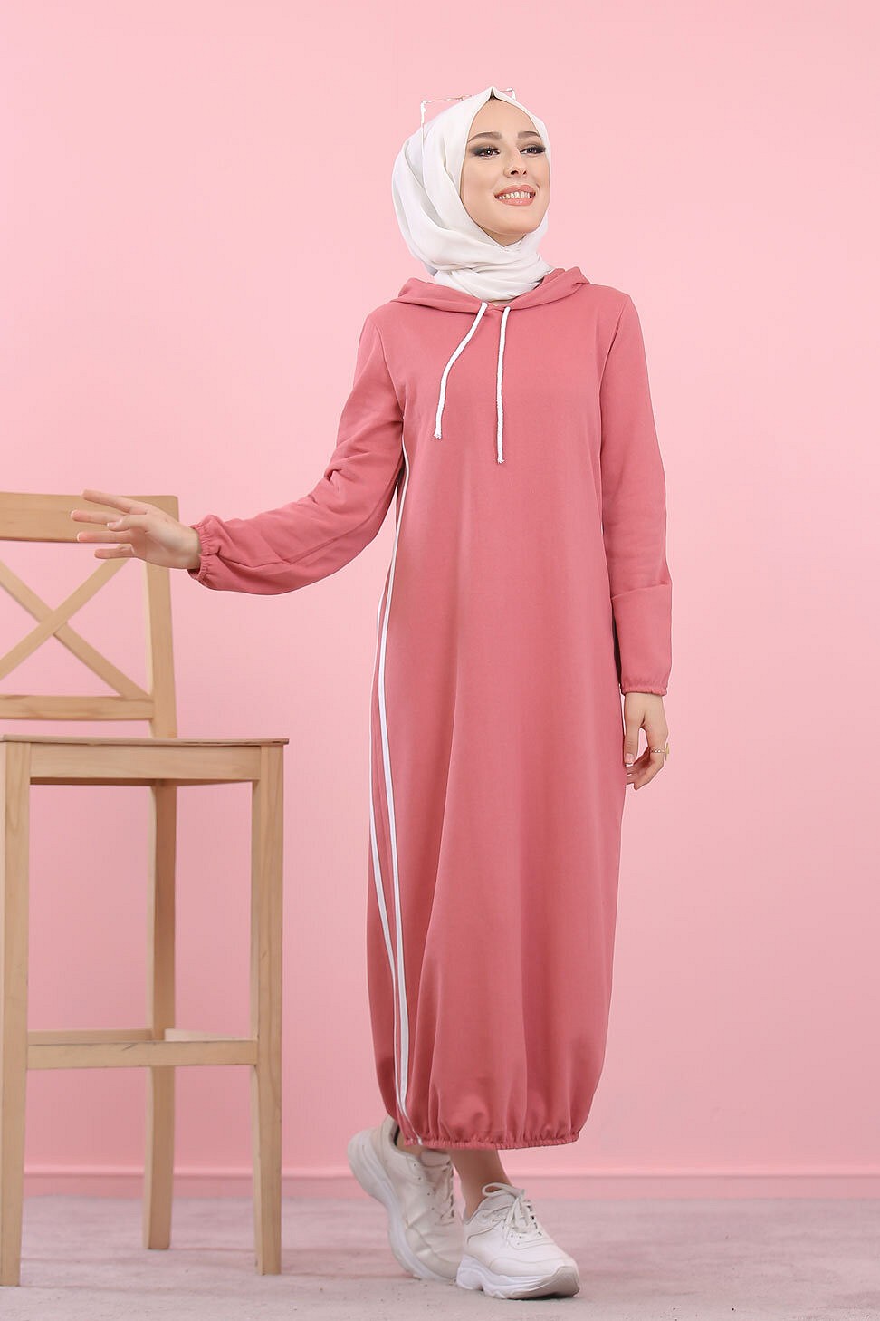 Laissez-vous séduire par cette robe longue sweatshirt ultra tendance conçue en coton mélangé uni, offrant douceur et confort dont vous ne pourrez plus vous passer. Dotée d’une capuche, et de deux traits blancs sur les côtés sur toute la longue de la robe... Modèle avec finition élastique à la base et en bas des manches longues.