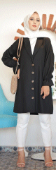Veste longue classique boutonnée élégante (Vêtement pour femme voilée) - Couleur noire - REF. 33249 (24.90 €) - En Promotion à 19.90 €