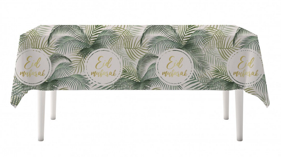 Nappe de table tropical Eid Mubarak (fête religieuse de l'Aïd) 120 x 180 cm - Motif tropical - REF. 35518 (6.00 €) - En Promotion à 4.90 €