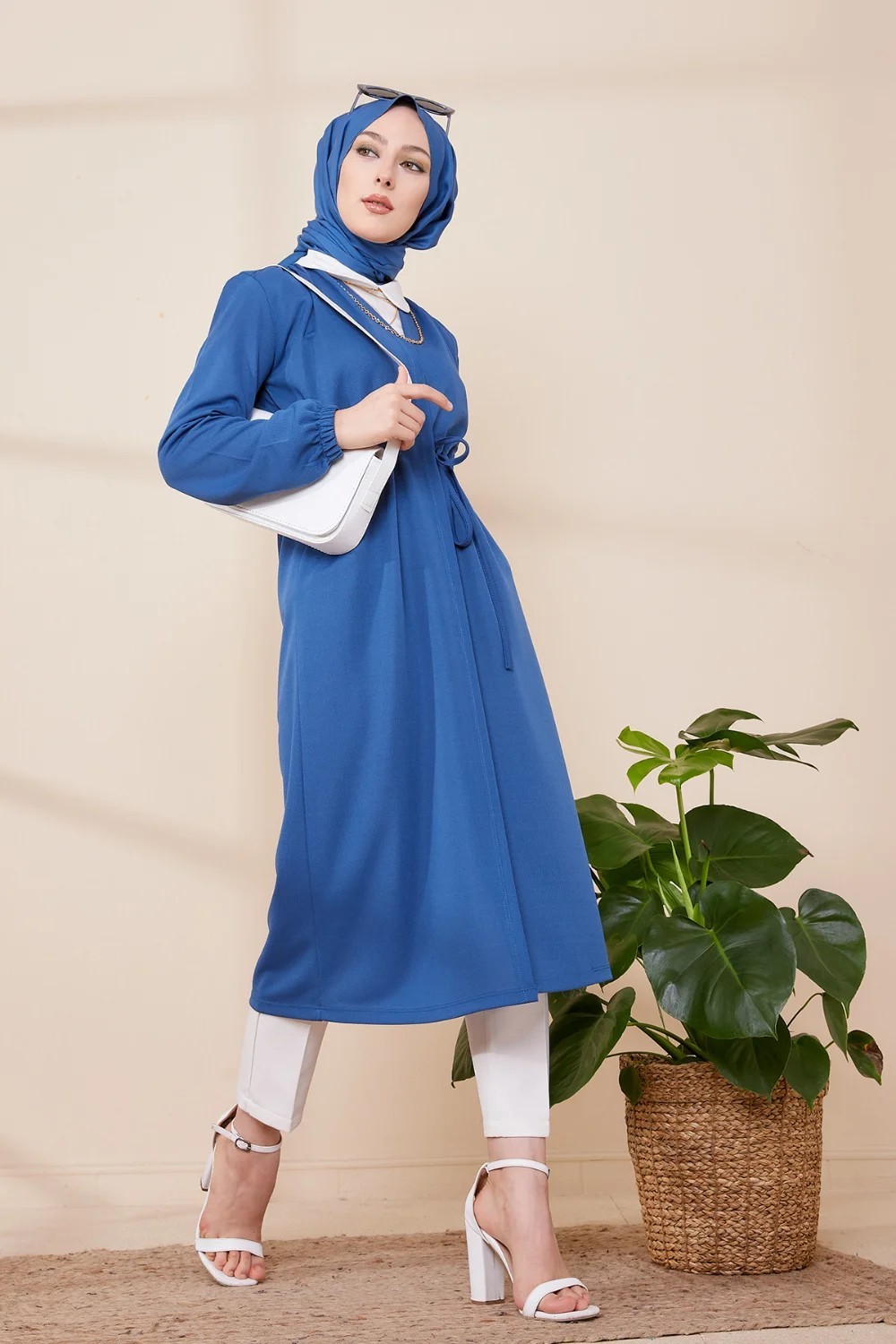 Tunique habillée à manche bouffante pour femme (Vetement de ville pour hijab) - Couleur bleue indigo - REF. 33112 (19.90 €)