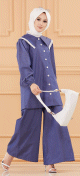 Ensemble casual deux pièces : tunique-chemise à dentelle et pantalon jupe large (Vêtement habillé pudique et ample pour hijab) - Couleur bleu marine - REF. 37149 (35.00 €) - En Promotion à 29.90 €
