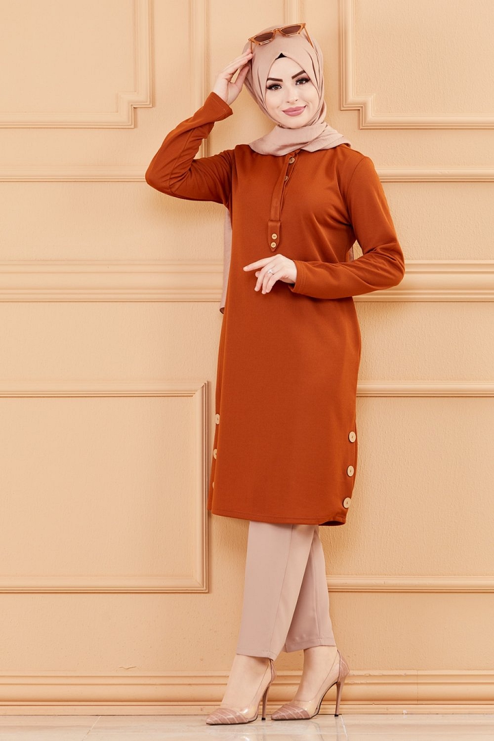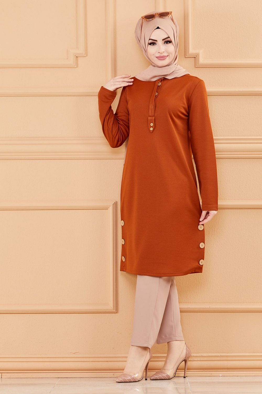 Tunique style habillé pour femme (Vêtement chic pour hijab) - Couleur brique Vetement & Accessoire