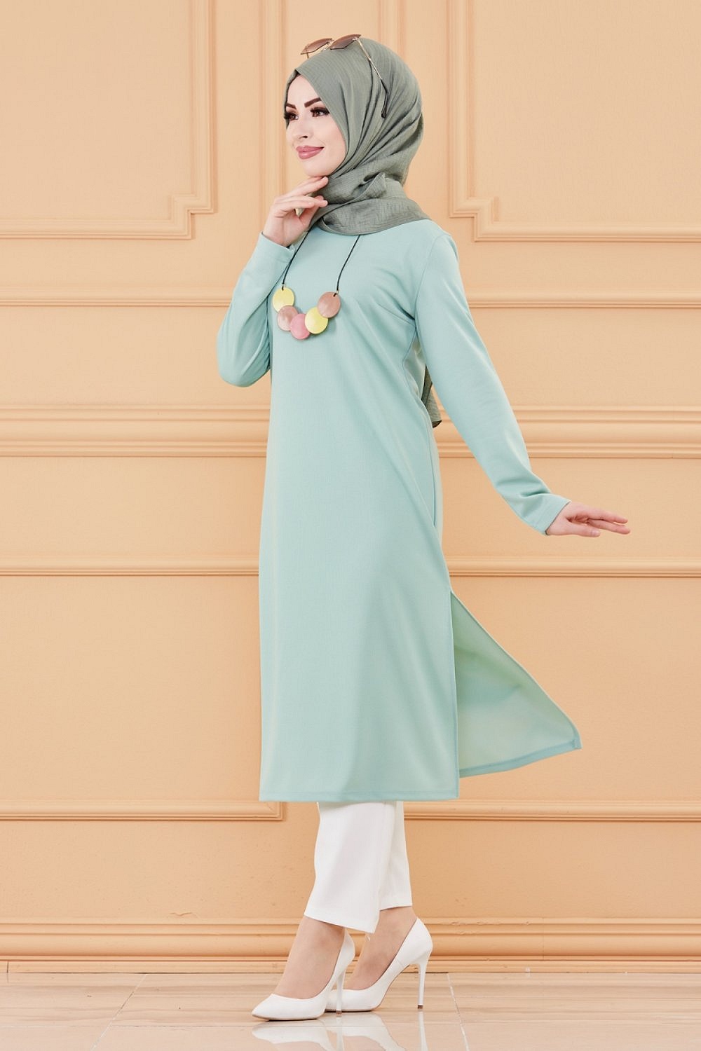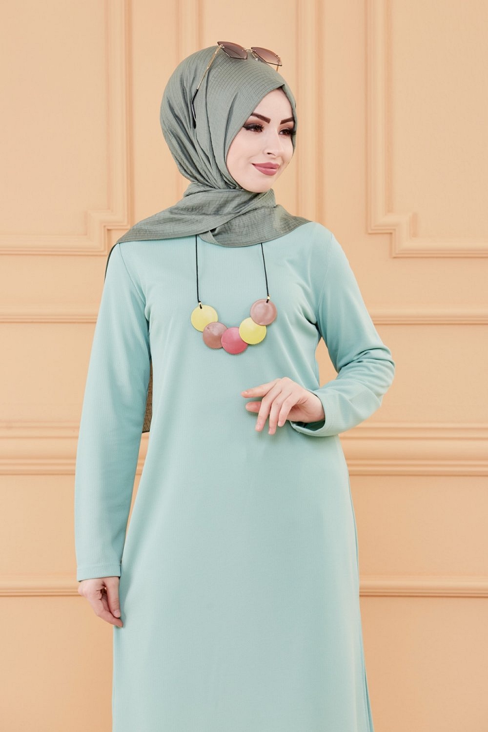 Tunique longue avec collier offert (Vetement pour femme voilée) - Couleur menthe Vetement & Accessoire