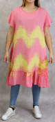 Robe été - Tunique longue et ample délavée de couleur rose et jaune (Coton et Lin - Grande taille pour femme) - REF. 32068 (28.00 €)