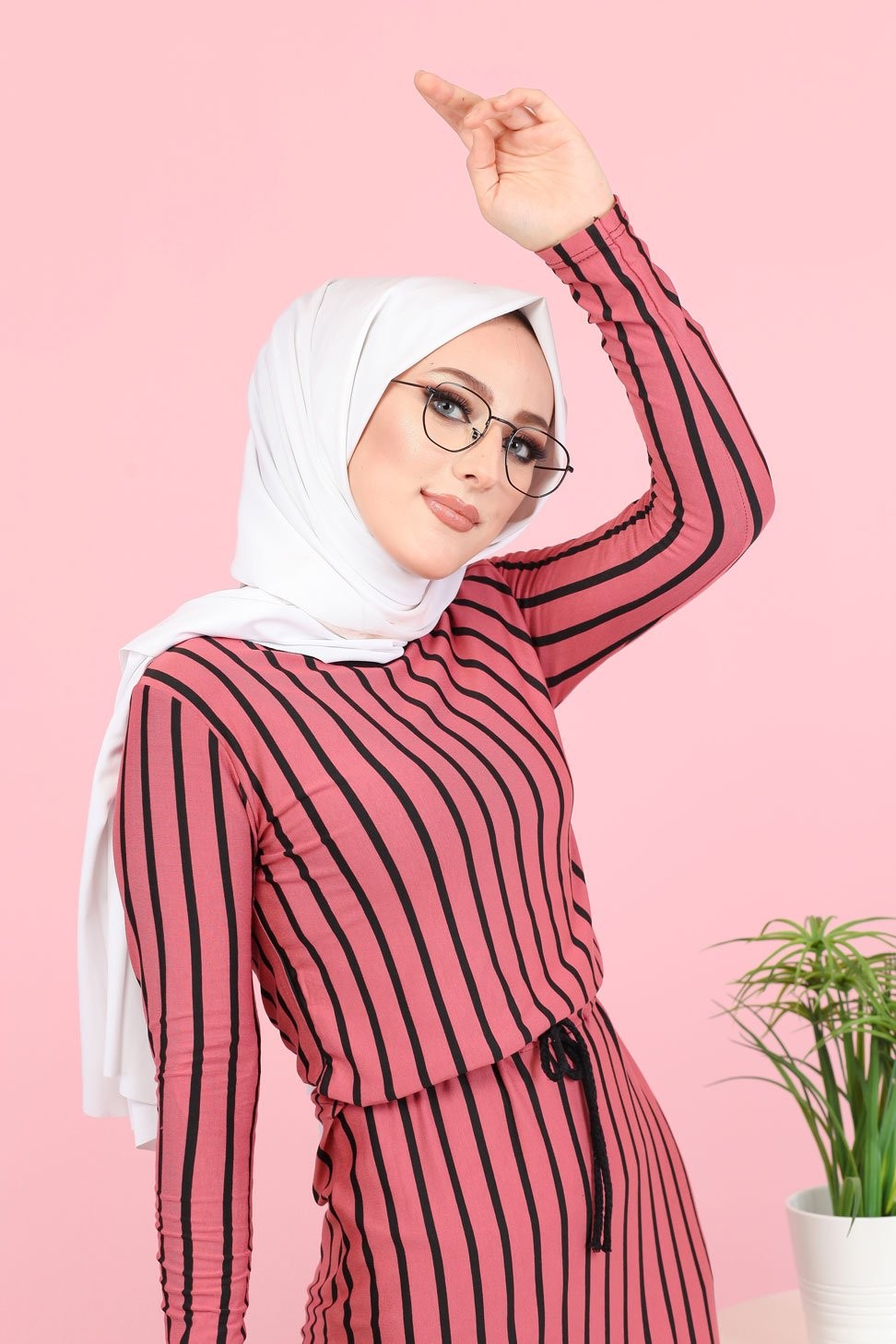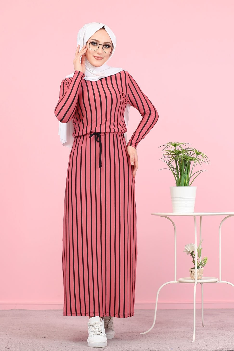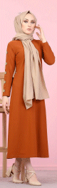 Robe casual décorée de boutons pour femme voilée (Modest Fashion France) - Couleur brique - REF. 33247 (22.00 €)