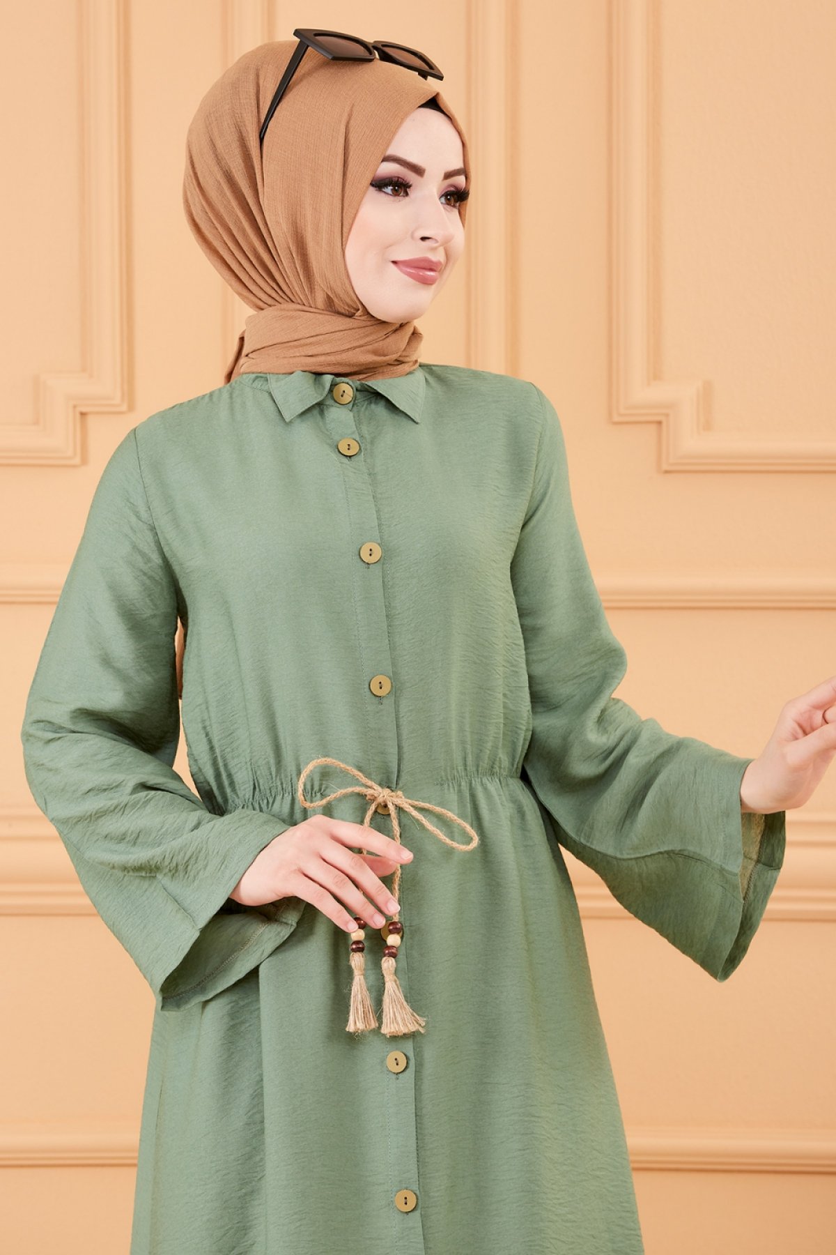 Les photos correspondent à du vert kaki foncé. Vous allez recevoir la même robe en couleur kaki clair.