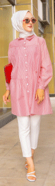 Chemise-Tunique ample à rayures bordeaux (Modest Fashion) - Couleur rose - REF. 33944 (25.00 €)