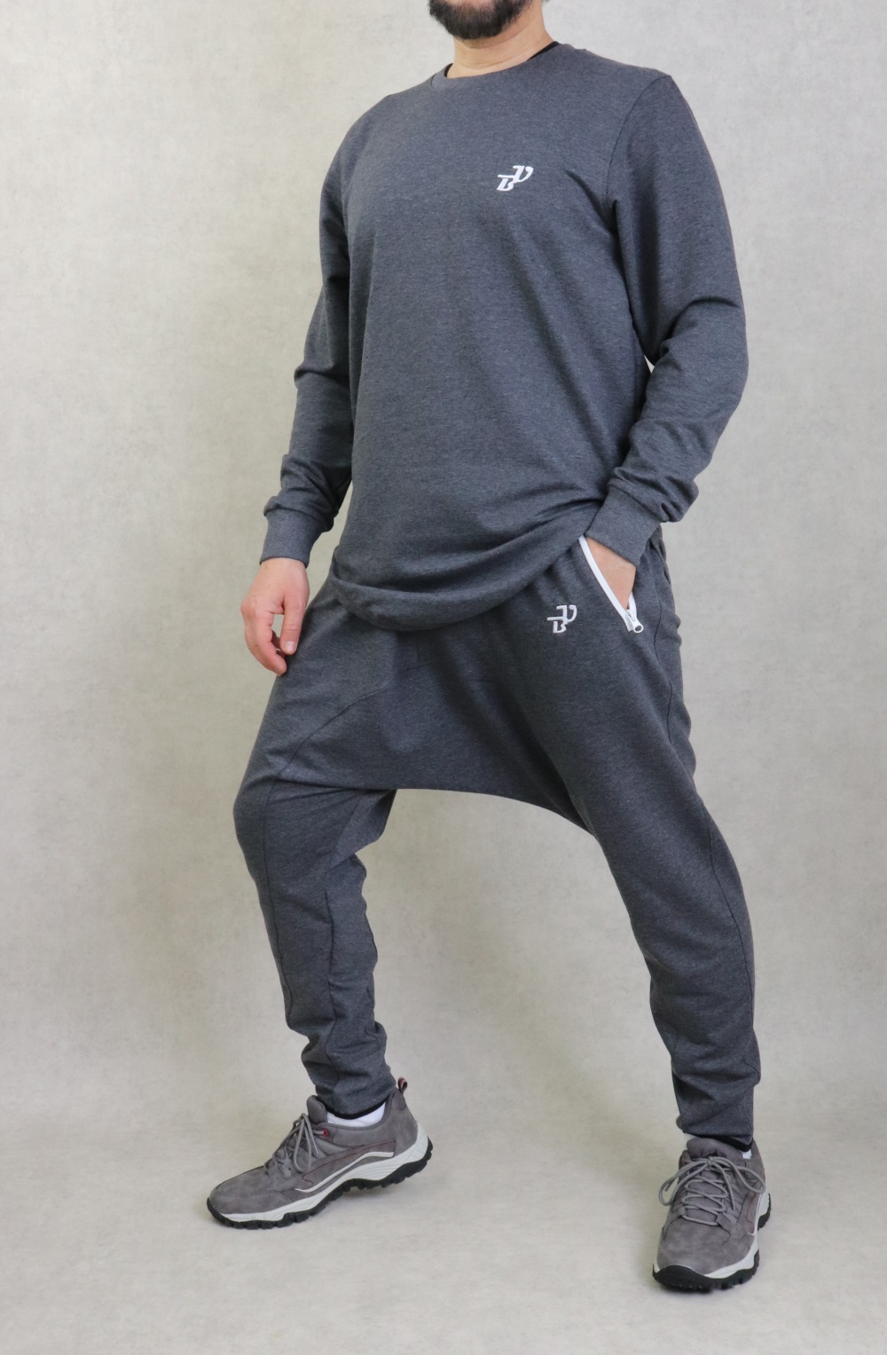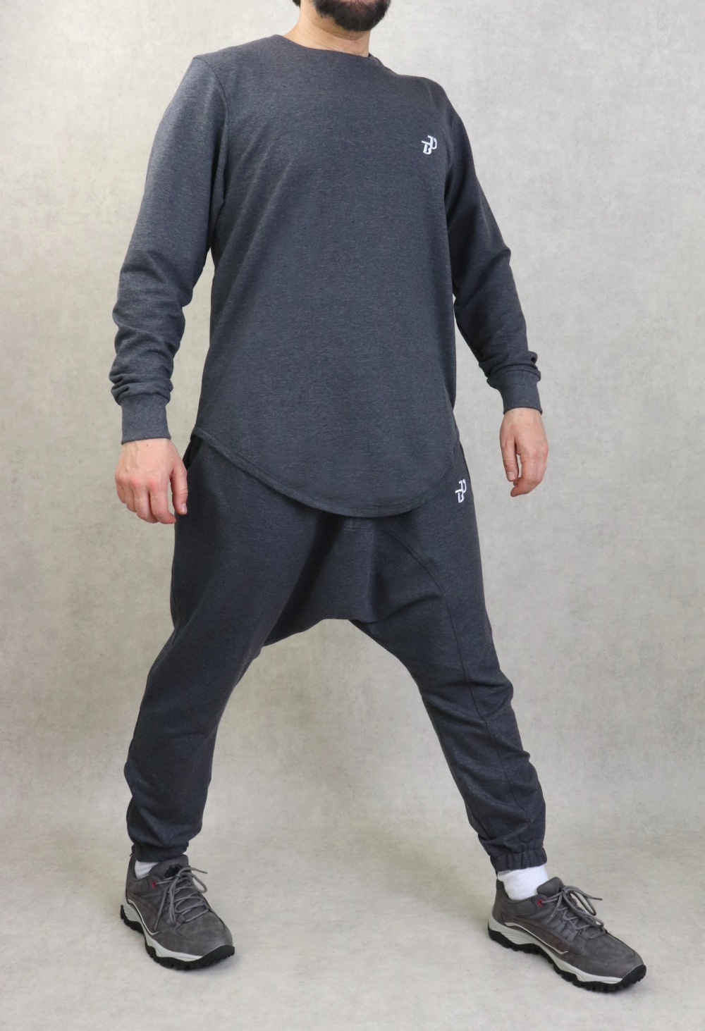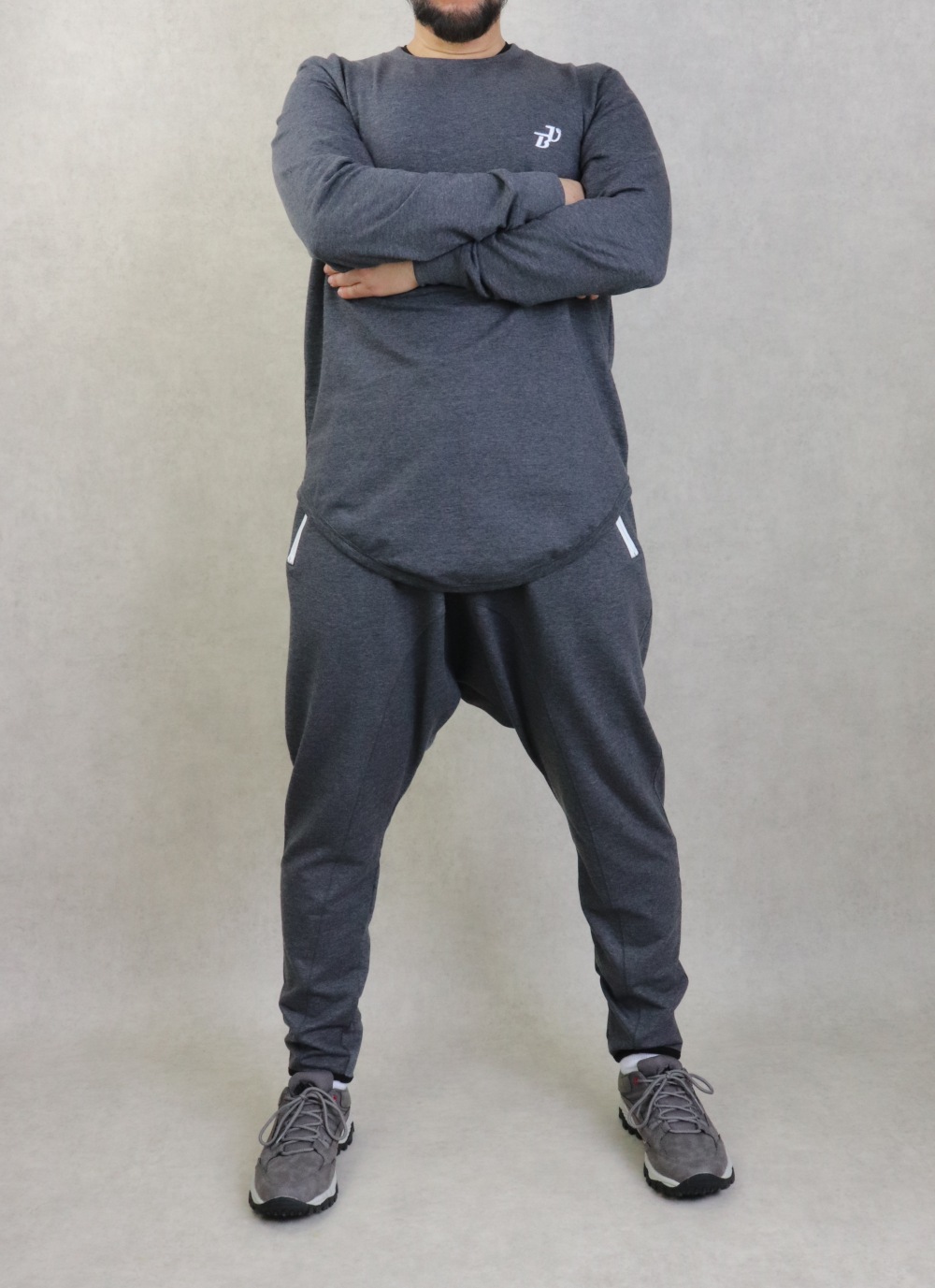 Sweat long, tissu léger, coupe incurvée (longline sweatshirt). Brodé logo "BU" (Best Ummah).
