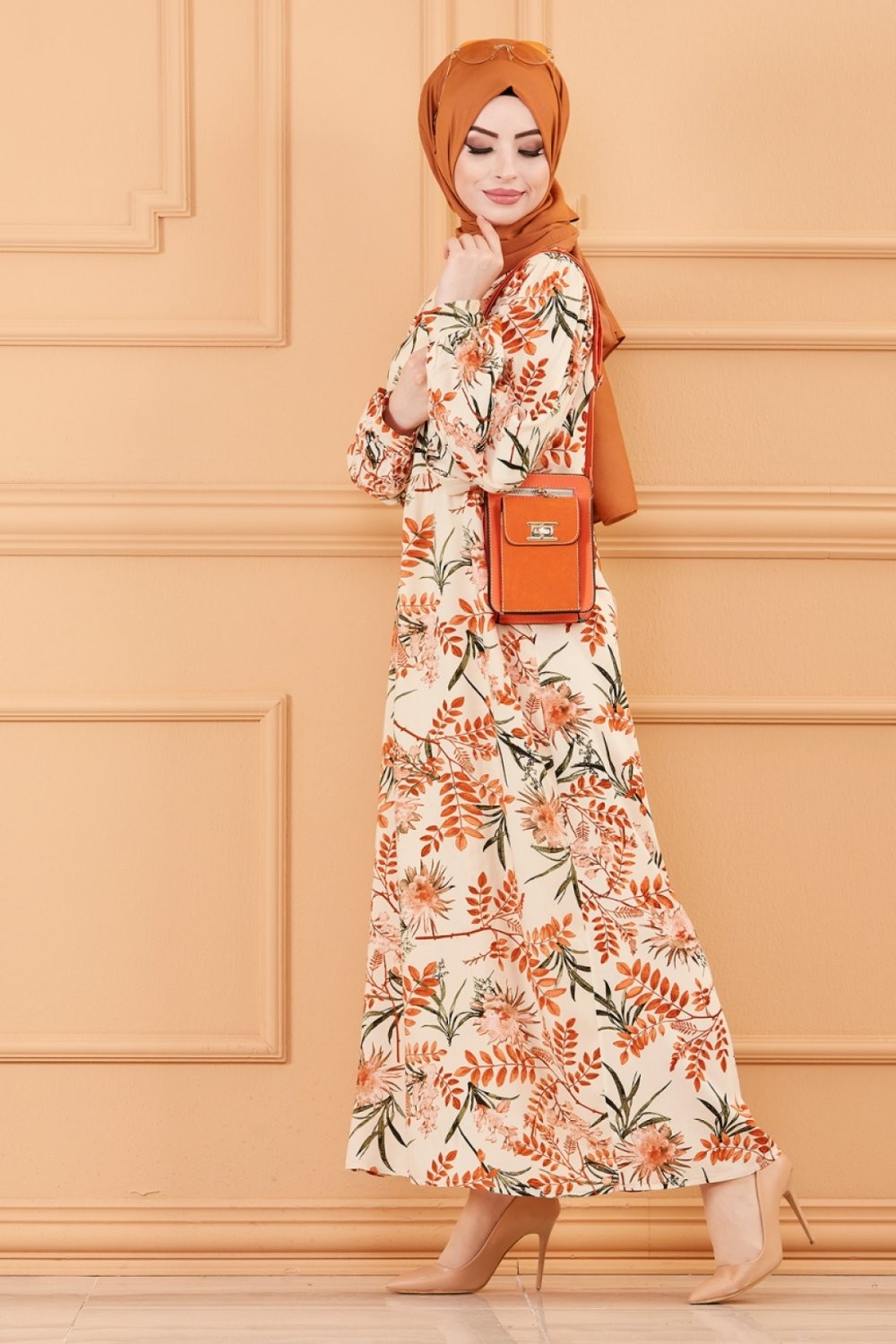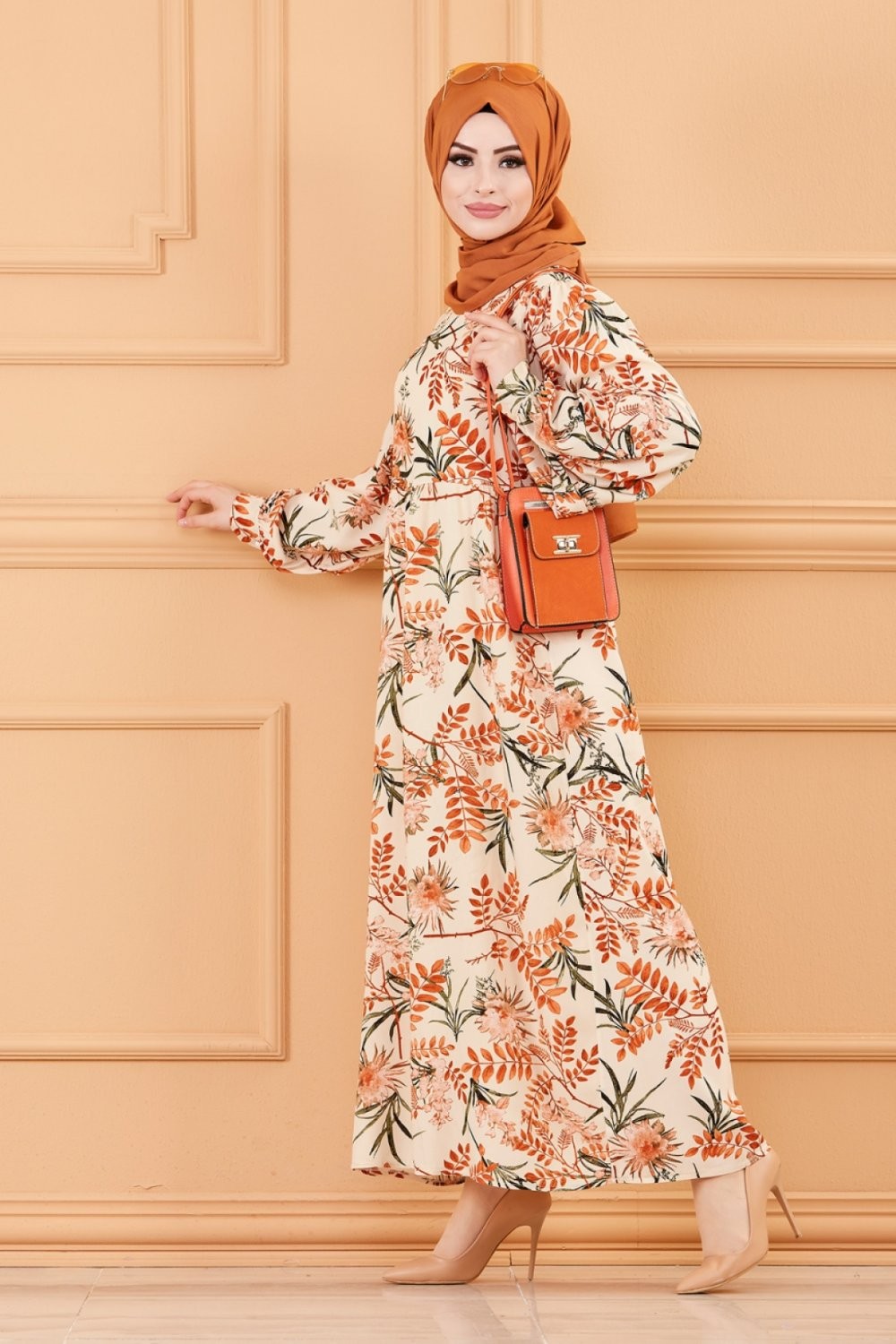 Robe longue et ample à fleurs pour femme (Vêtement hijab mastour) - Couleur beige Vetement & Accessoire