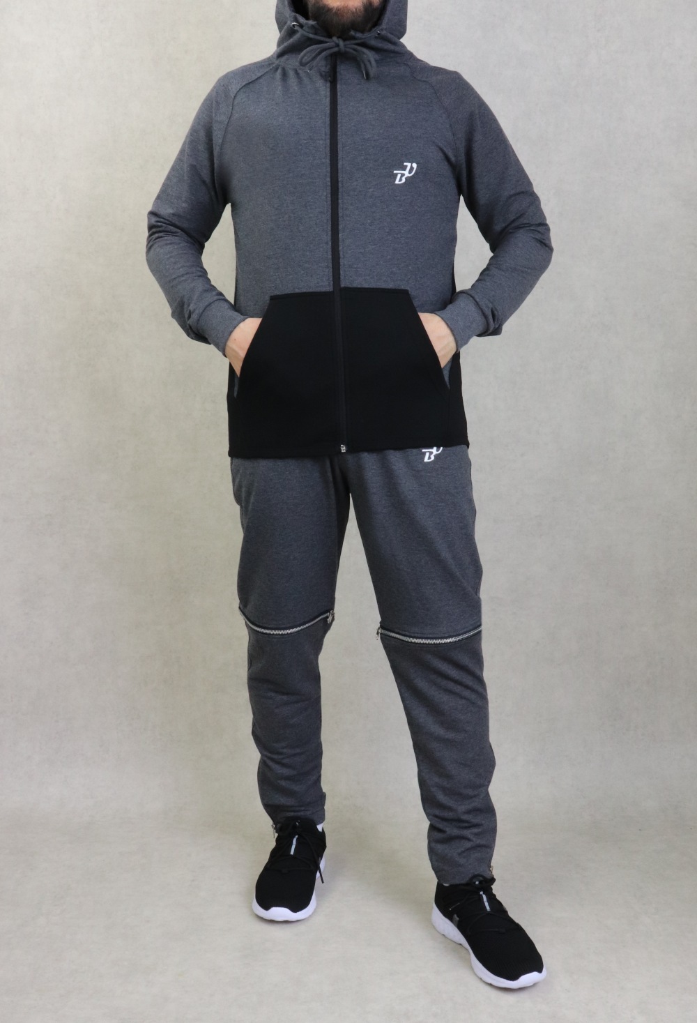 Pantalon modulable, peut se transformer en bermuda. Tissu de qualité type jogging stretch et léger. Deux poches latérales et une poche à l’arrière. Cordon de serrage. Braguette zippée. Chevilles zippées et taille à élastiques.