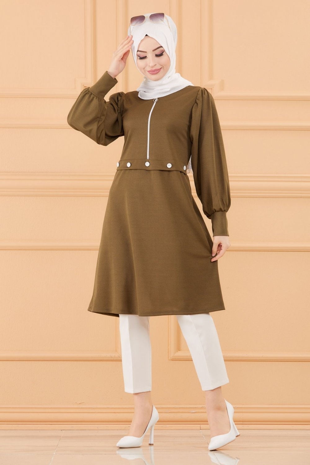 Tunique casual pour femme (Boutique en ligne Vetement Hijab - Mode Musulmane) - Couleur kaki