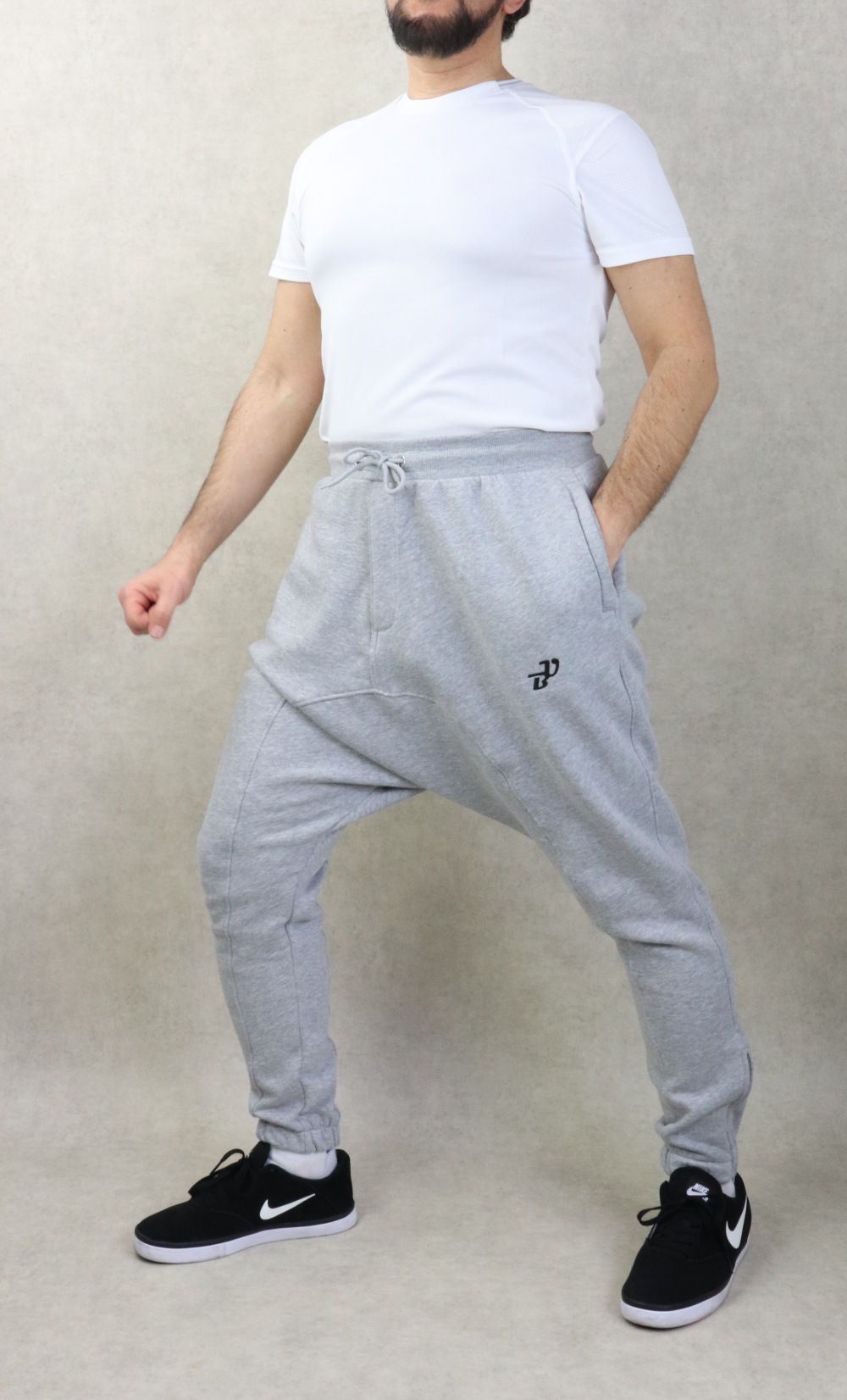 Pantalon jogging type Sarouel coton molletonné zippé aux chevilles pour homme - Marque Best Ummah - Couleur Gris clair chiné - REF. 36708 (29.90 €)